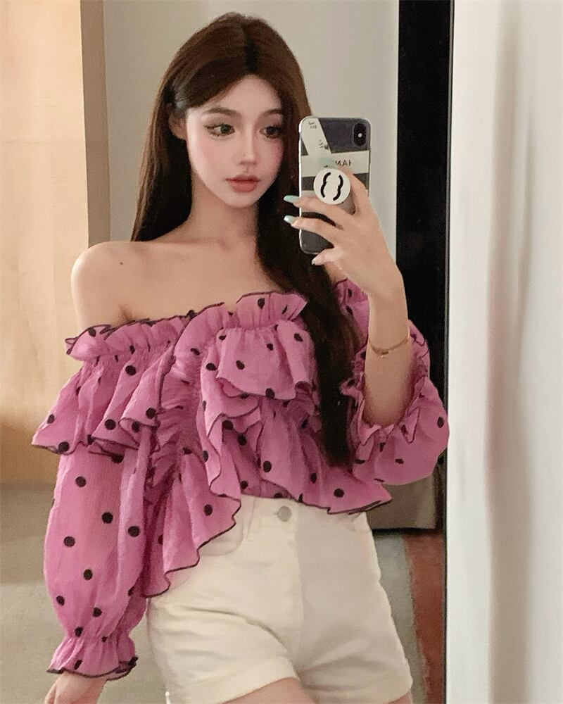 sense polka dot chiffon shirt women's 2022 summer new chic one-shoulder temperament pure desire niche top シフォン サマー 夏物 ピュア nana80661945723 | modepoisson