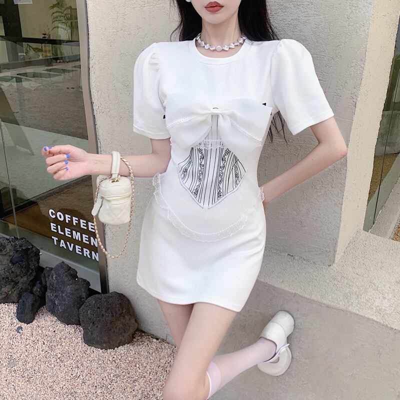 Mesh bow dress women's summer 2022 short skirt puff sleeves temperament waist thin high-end A-line skirt ショート リボン サマー 夏物 メッシュ スカート Aライン nana92768258966 | modepoisson