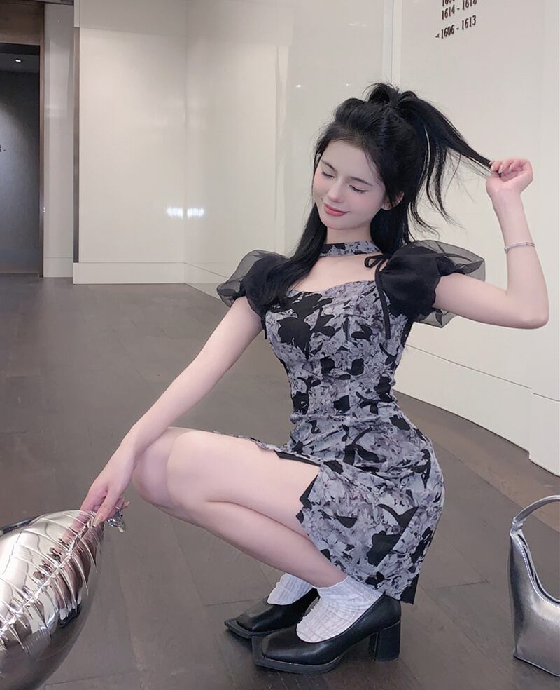 2022 summer new French retro sexy puff sleeve dress high-quality temperament floral hip skirt women レトロ サマー 夏物 花柄 スカート nana25546286163 | modepoisson