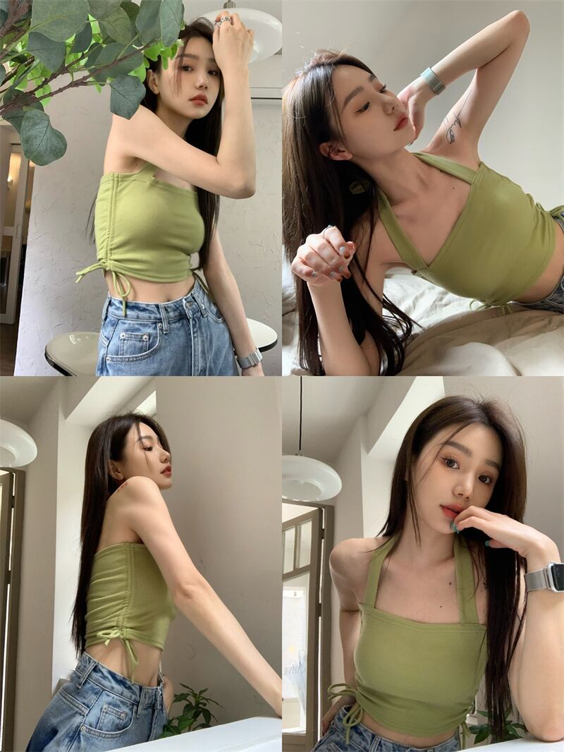Halter neck sling women's summer sexy pure desire sweet and spicy inner short section outer wear French niche vest top ショート 大人ガーリー スウィート キュート カジュアル サマー 夏物 ピュア nana90460448657 | modepoisson