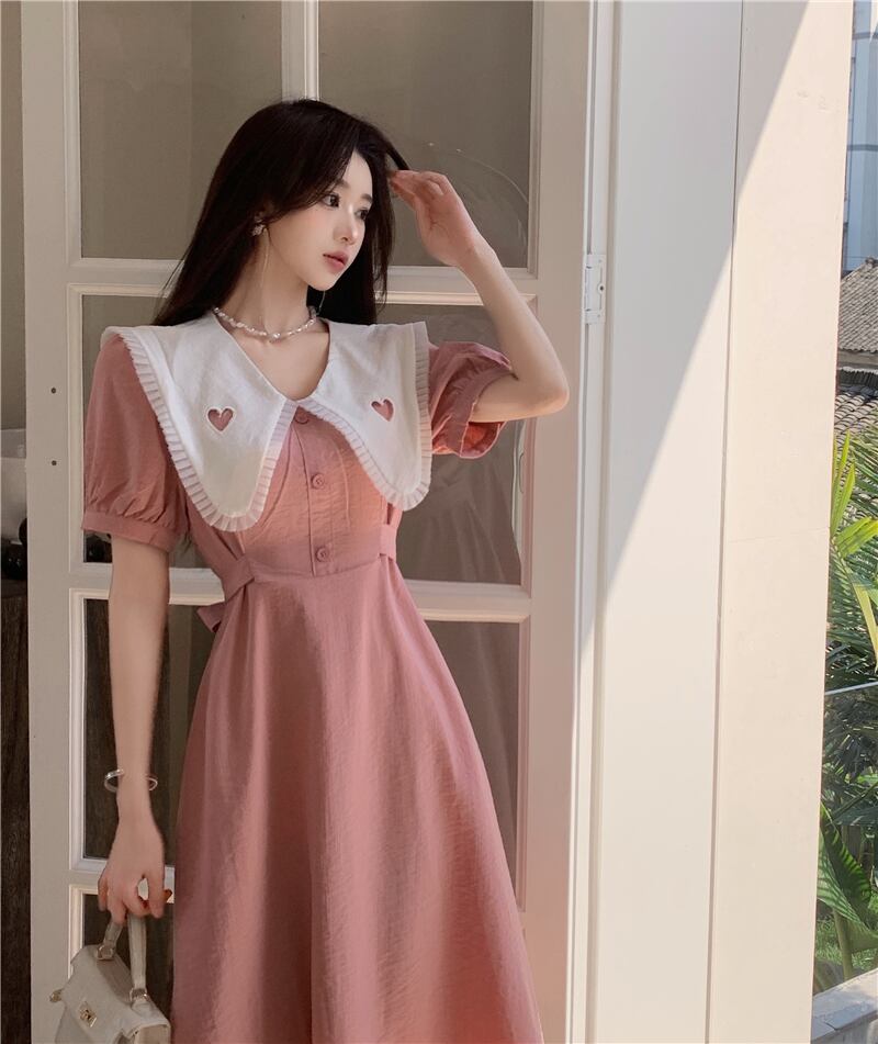 sense doll collar waist dress women's 2022 summer new French temperament puff sleeve long skirt ロング サマー 夏物 スカート nana78541527989 | modepoisson