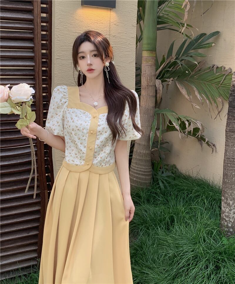 French bellflower two-piece suit summer 2022 new fashionable temperament short-sleeved shirt high-waisted skirt women's clothing サマー 夏物 スカート フラワーデザイン nana11529734923 | modepoisson