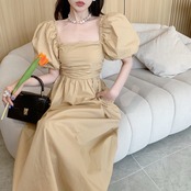 Sweet dress summer 2022 new French temperament square neck puff sleeves waist slim long skirt women's clothing ロング 大人ガーリー スウィート キュート カジュアル サマー 夏物 スカート スリム スクウェア nana82800825668 | modepoisson