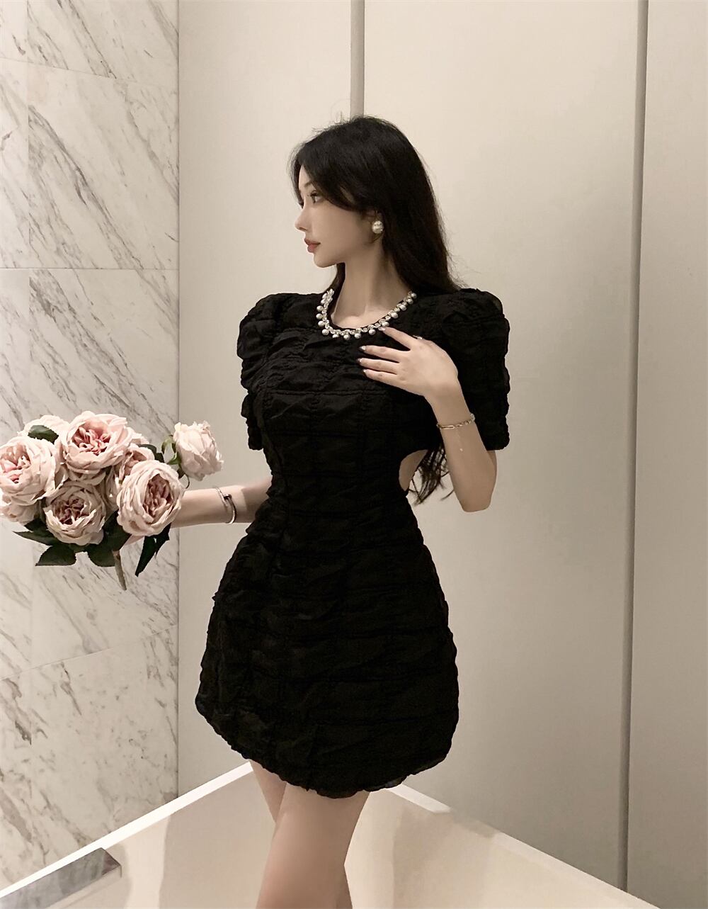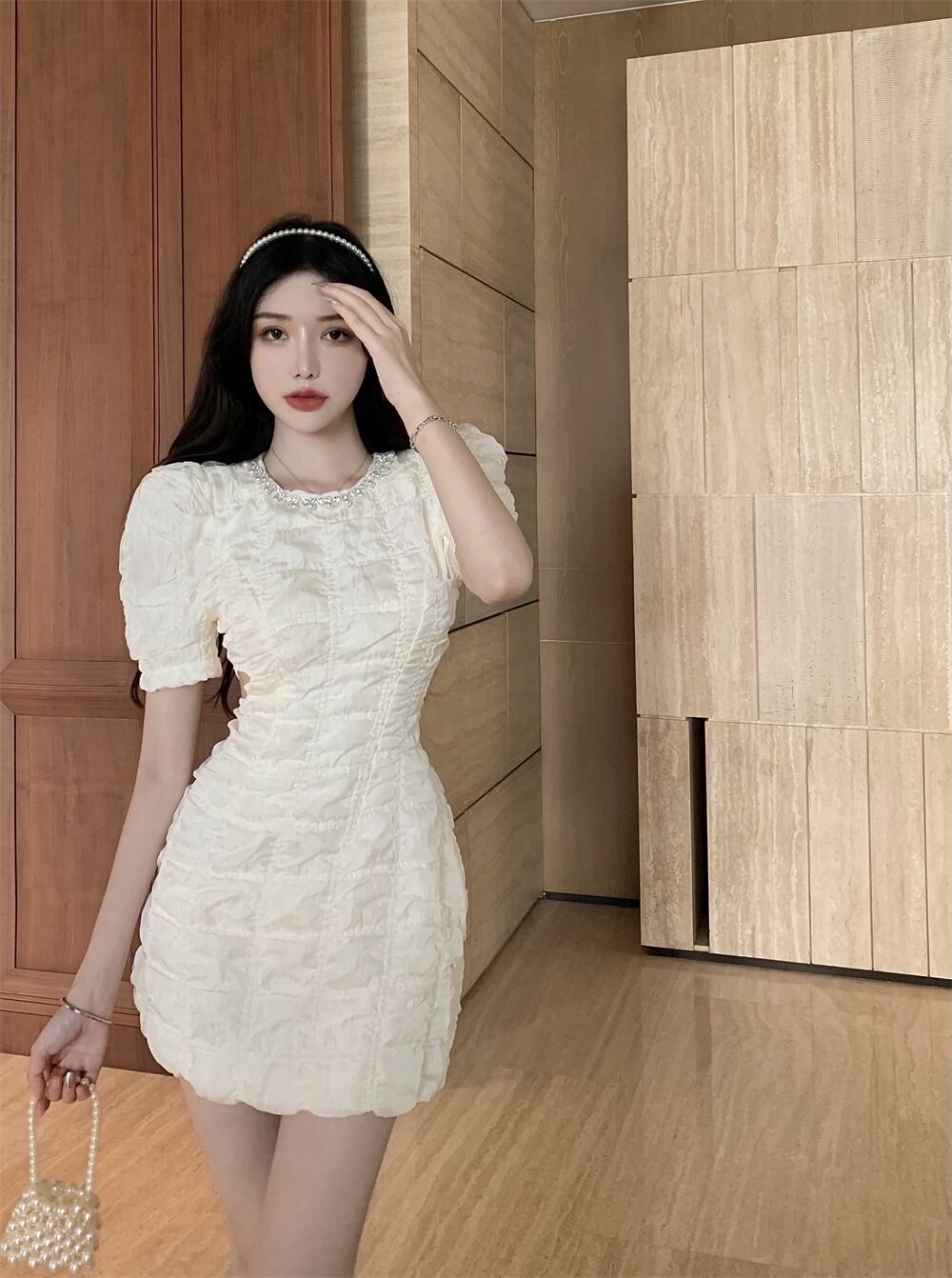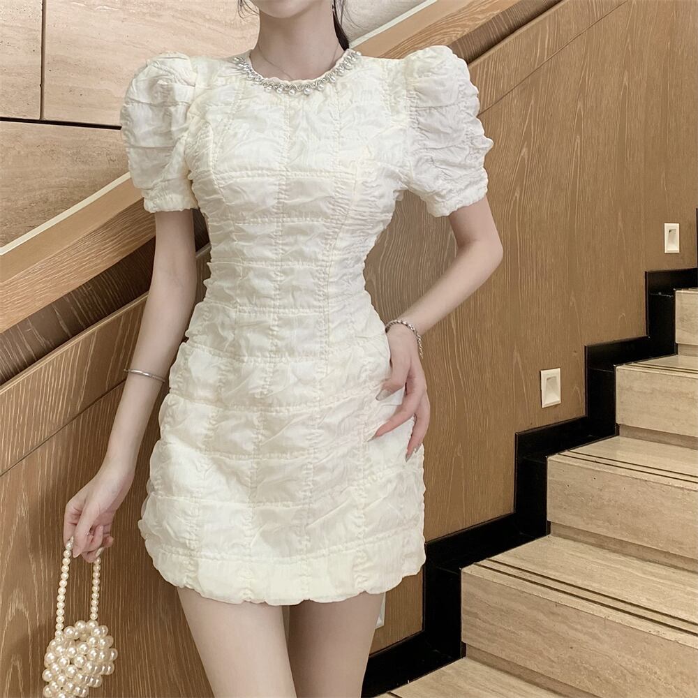 Puff sleeves hollow waist design sense hip dress women's 2022 summer new high-end white skirt ホワイト サマー 夏物 スカート nana77827683713 | modepoisson