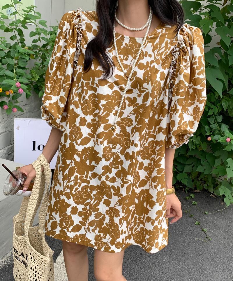 sense niche floral loose and thin puff sleeve dress women's 2022 summer new sweet and spicy skirt 大人ガーリー スウィート キュート カジュアル サマー 夏物 花柄 スカート nana76996922163 | modepoisson