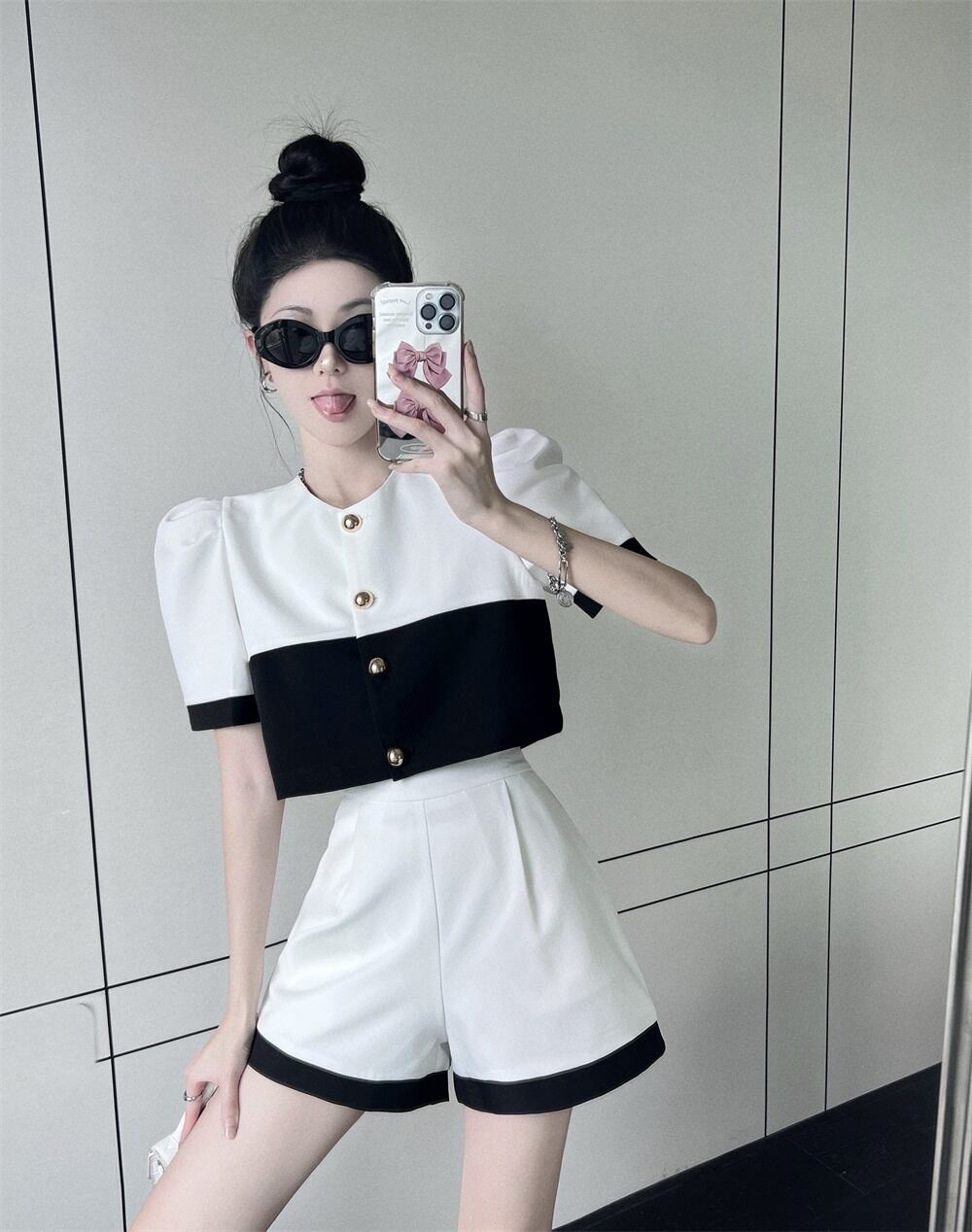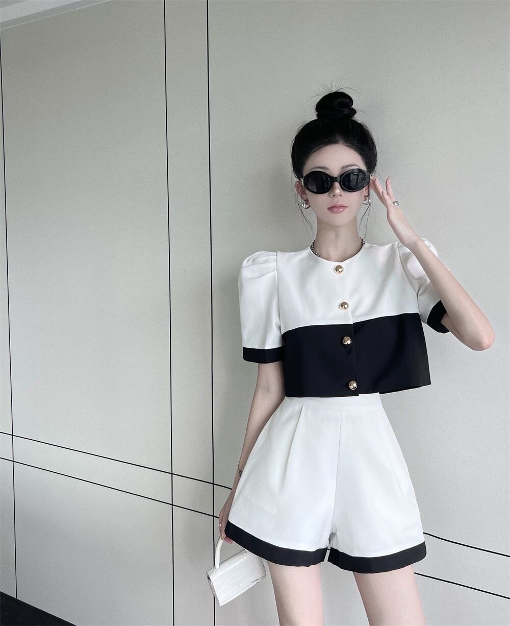 French Bellflower two-piece suit 2022 summer new fashion temperament suit jacket high waist wide leg shorts women's clothing ハイウェスト サマー 夏物 ショーツ ブルマー ワイドレッグ ワイドパンツ フラワーデザイン nana3461988129 | modepoisson