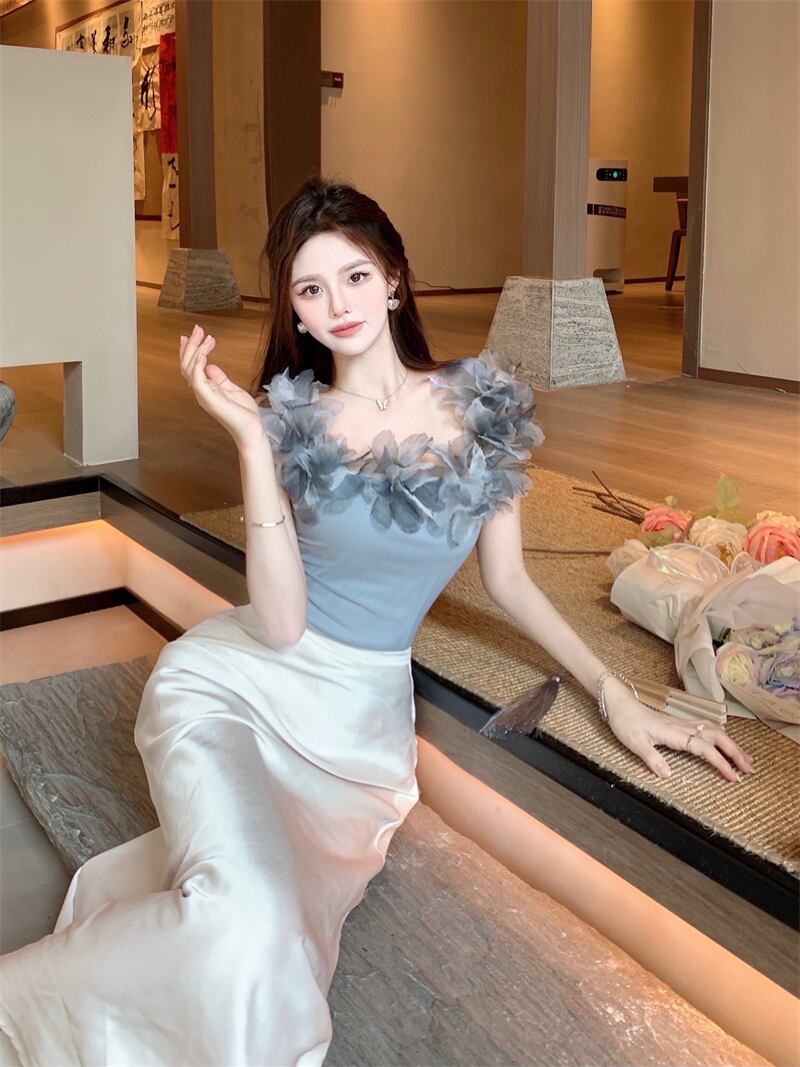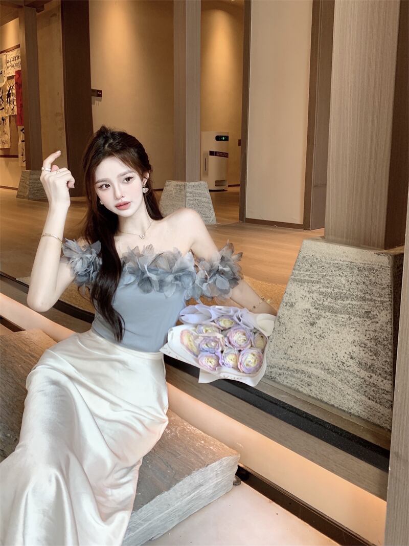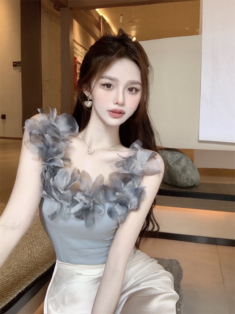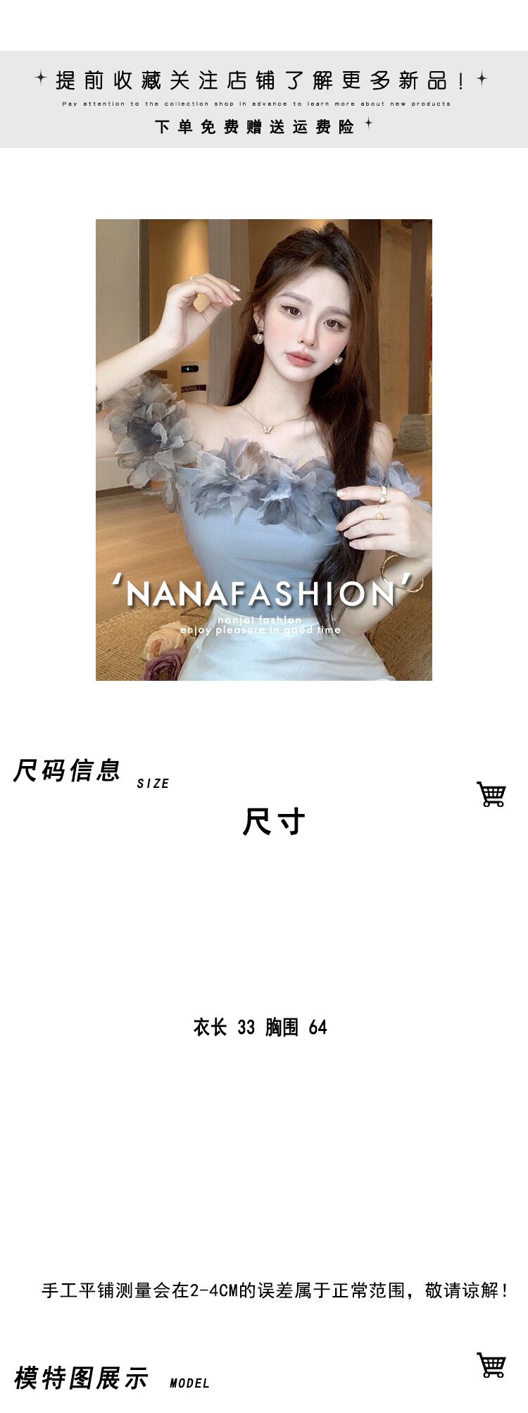 French pure desire style three-dimensional flower tube top sexy one-shoulder short top summer camisole women's clothing ショート サマー 夏物 ピュア フラワーデザイン nana6644996649 | modepoisson