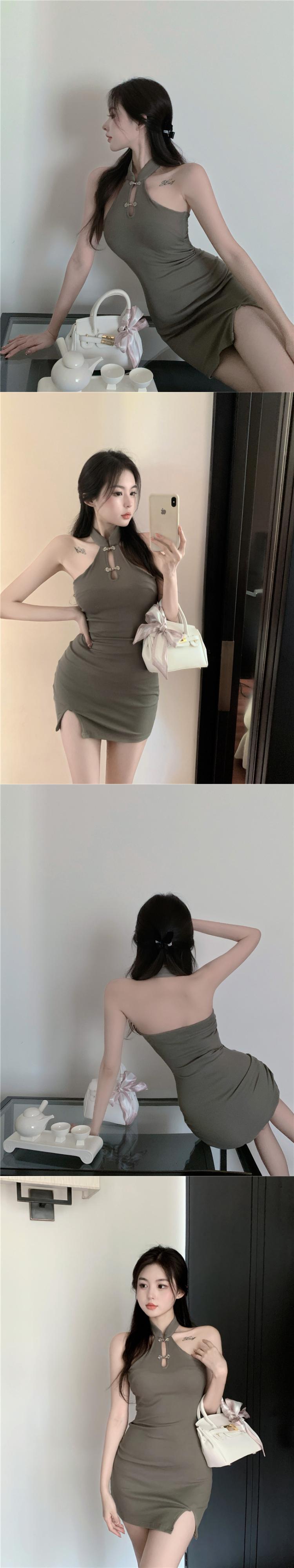 Improved version of cheongsam temperament off-the-shoulder black halter dress 2022 summer new split bag hip short skirt women ショート ブラック サマー 夏物 スカート nana85121574442 | modepoisson