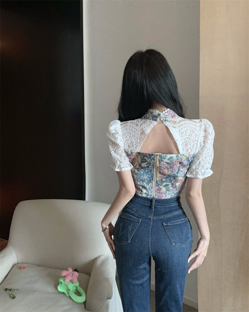 French retro lace puff sleeves Chinese design niche top shirt ladies summer fashion beautiful small shirt レトロ レース サマー 夏物 nana89869405666 | modepoisson