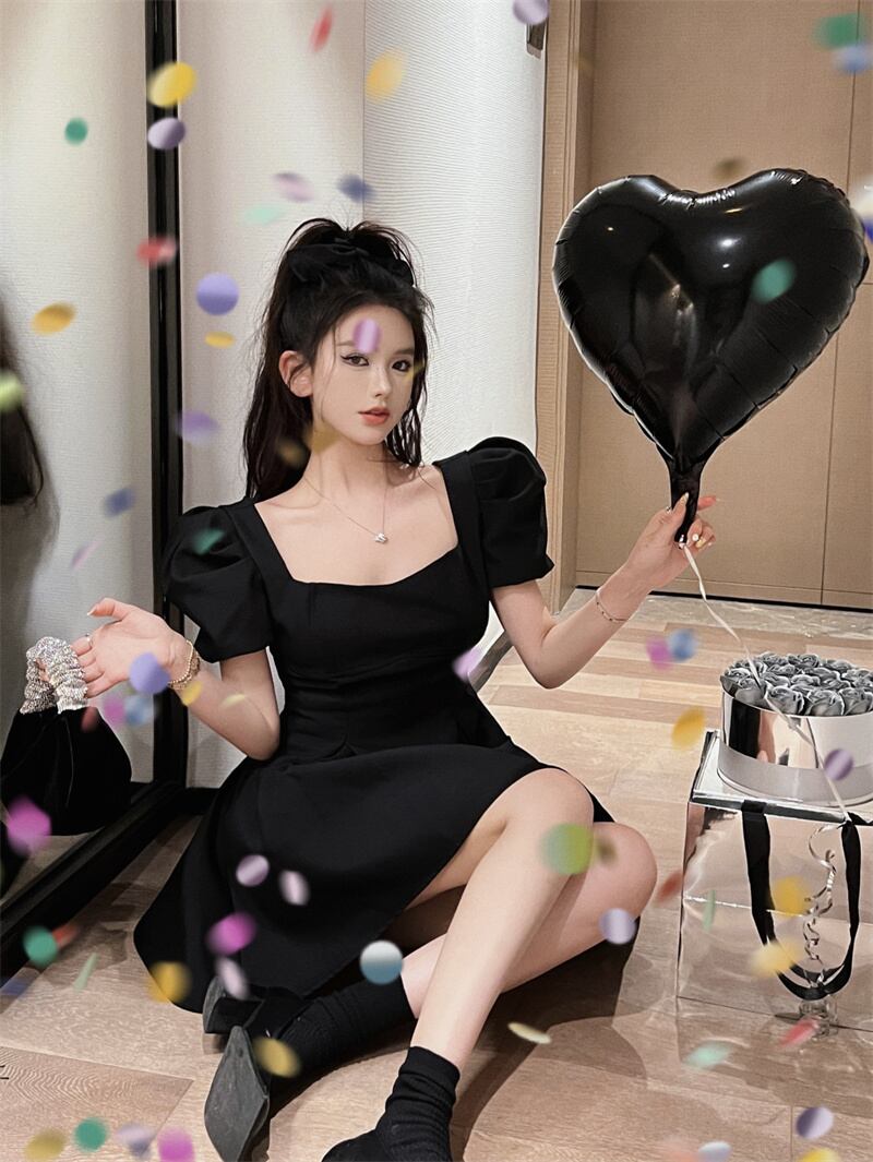 -quality black puff sleeve dress women's summer 2022 new waist-length white sexy short skirt ショート ホワイト ブラック サマー 夏物 スカート nana21003590126 | modepoisson