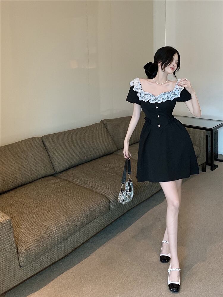 French small fragrance style ladies temperament dress female 2022 summer new design small public fluffy little black skirt ブラック ふわふわ サマー 夏物 スカート nana88352583633 | modepoisson