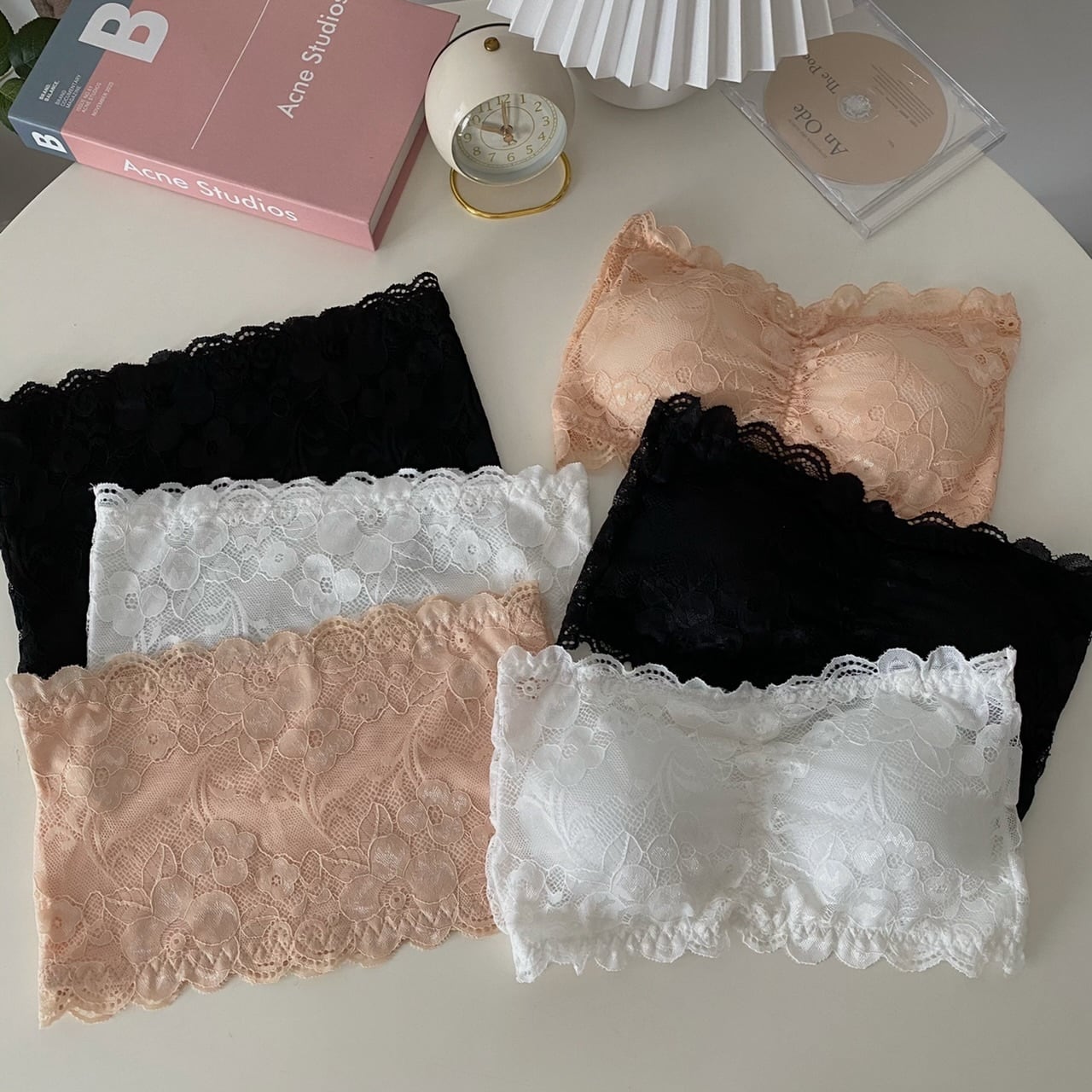 Lace tube top underwear women's summer thin strapless anti-glare vest sexy gathered chest wrap top レッド レース サマー 夏物 nana62194237735 | modepoisson