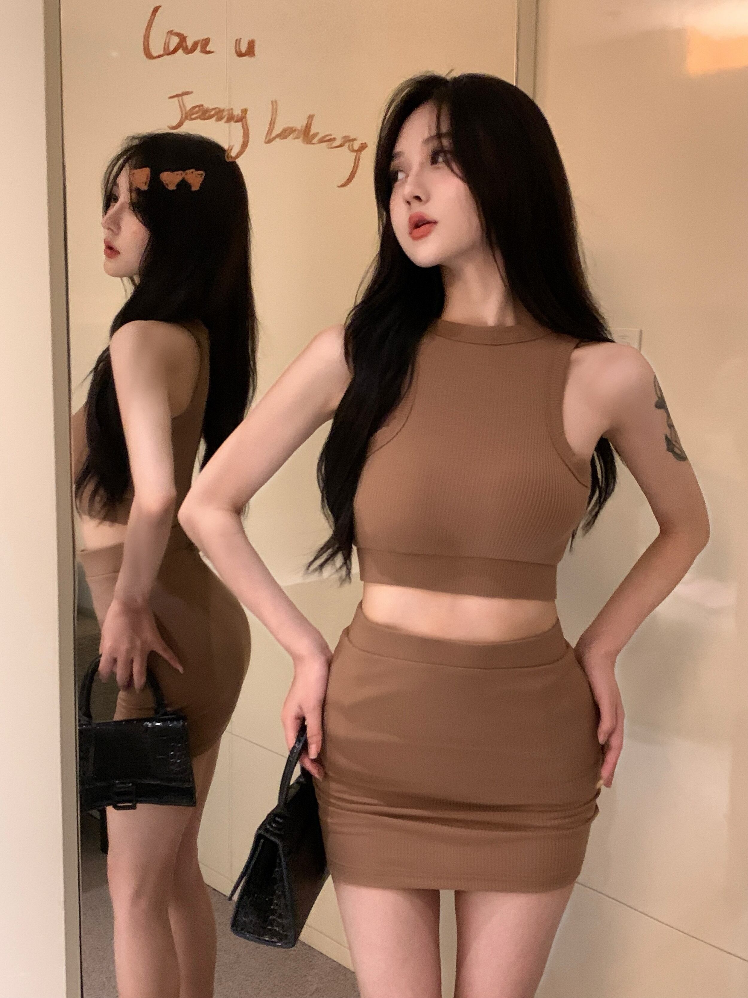 Summer suit 2022 new pure desire sleeveless vest top package hip slim skirt two-piece women's clothing サマー 夏物 ノースリーブ スリムヒップ スカート スリム ピュア nana93068635377 | modepoisson