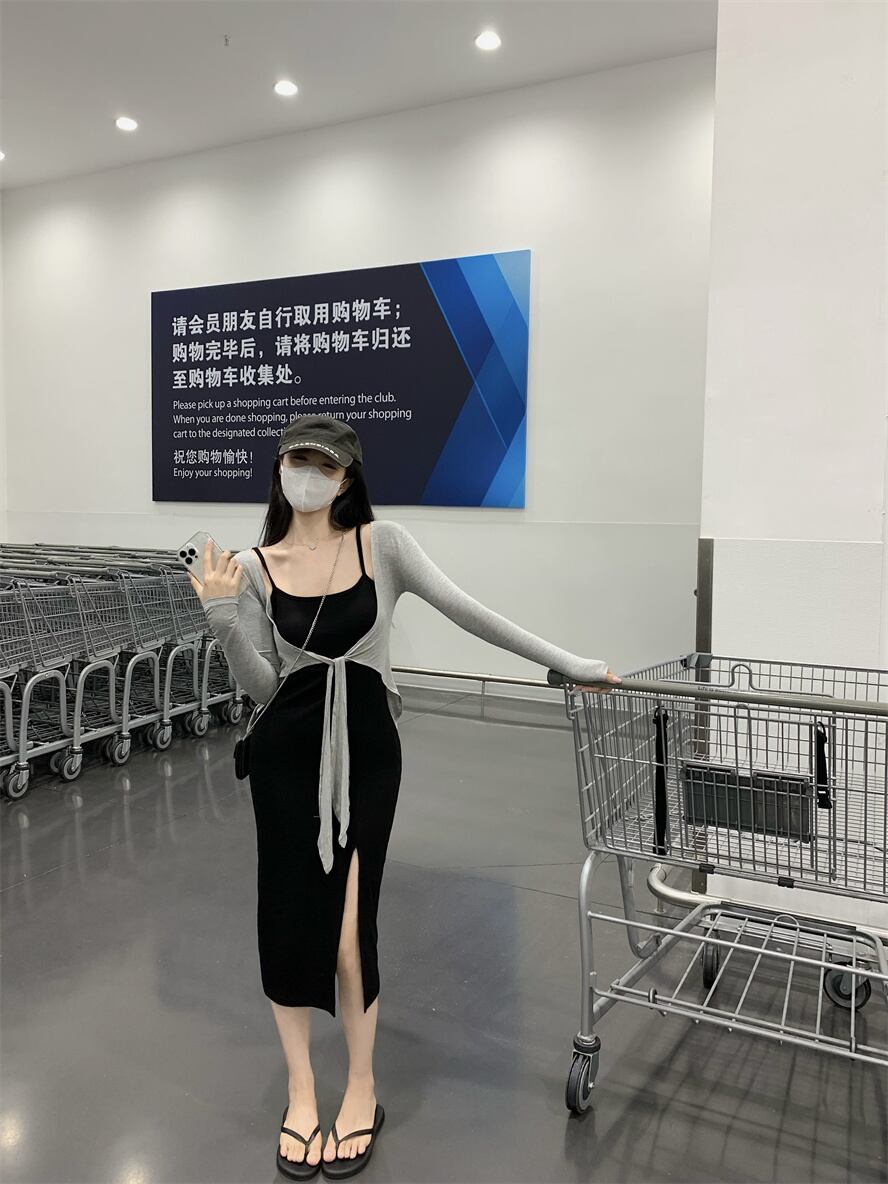 Suit women's 2022 summer new design sense niche bandage slim cardigan long-sleeved top suspender dress ロング カーディガン サマー 夏物 スリム nana15307517374 | modepoisson