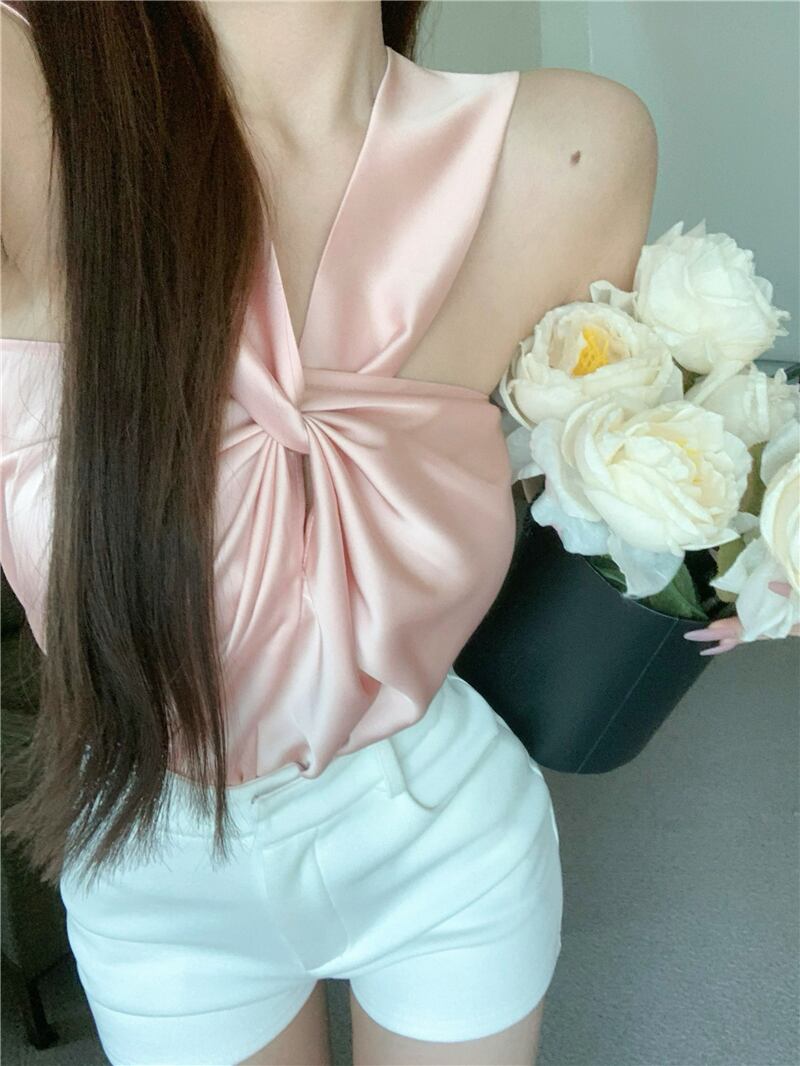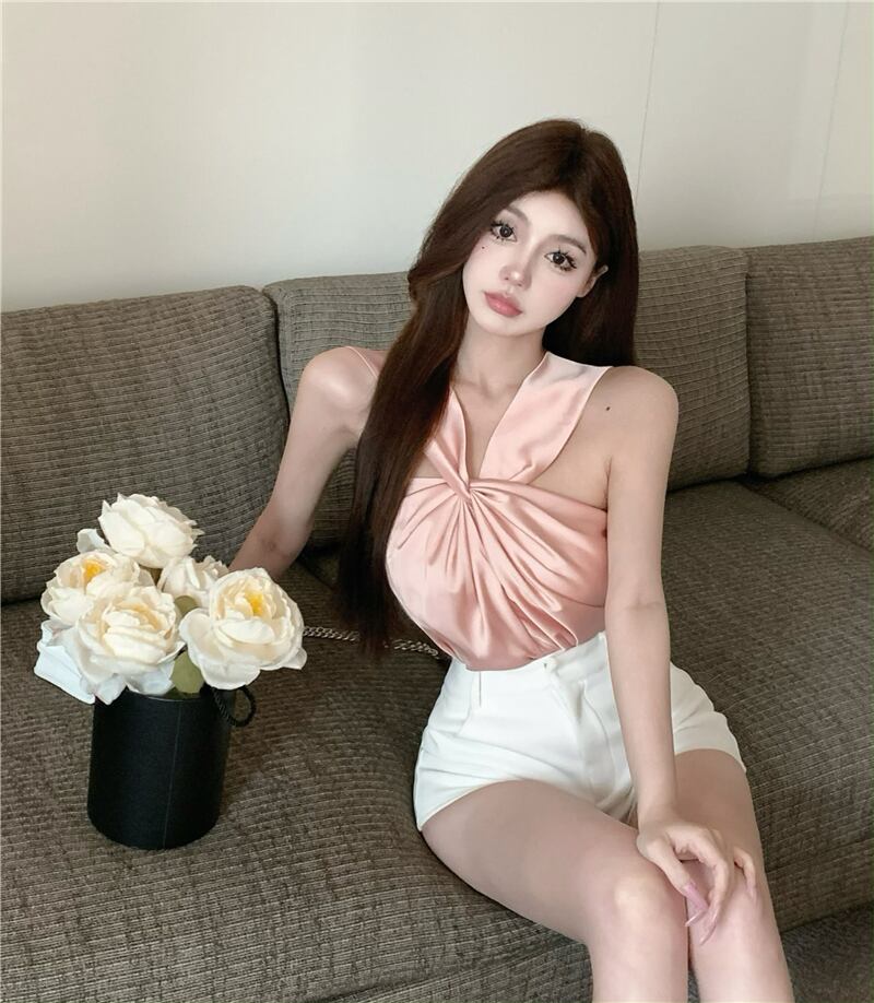 Sleeveless Camisole Summer Outer Wear Loose Short Section -quality Small Chic Unique French Spice Girls Tops ショート サマー 夏物 ノースリーブ nana58108012730 | modepoisson
