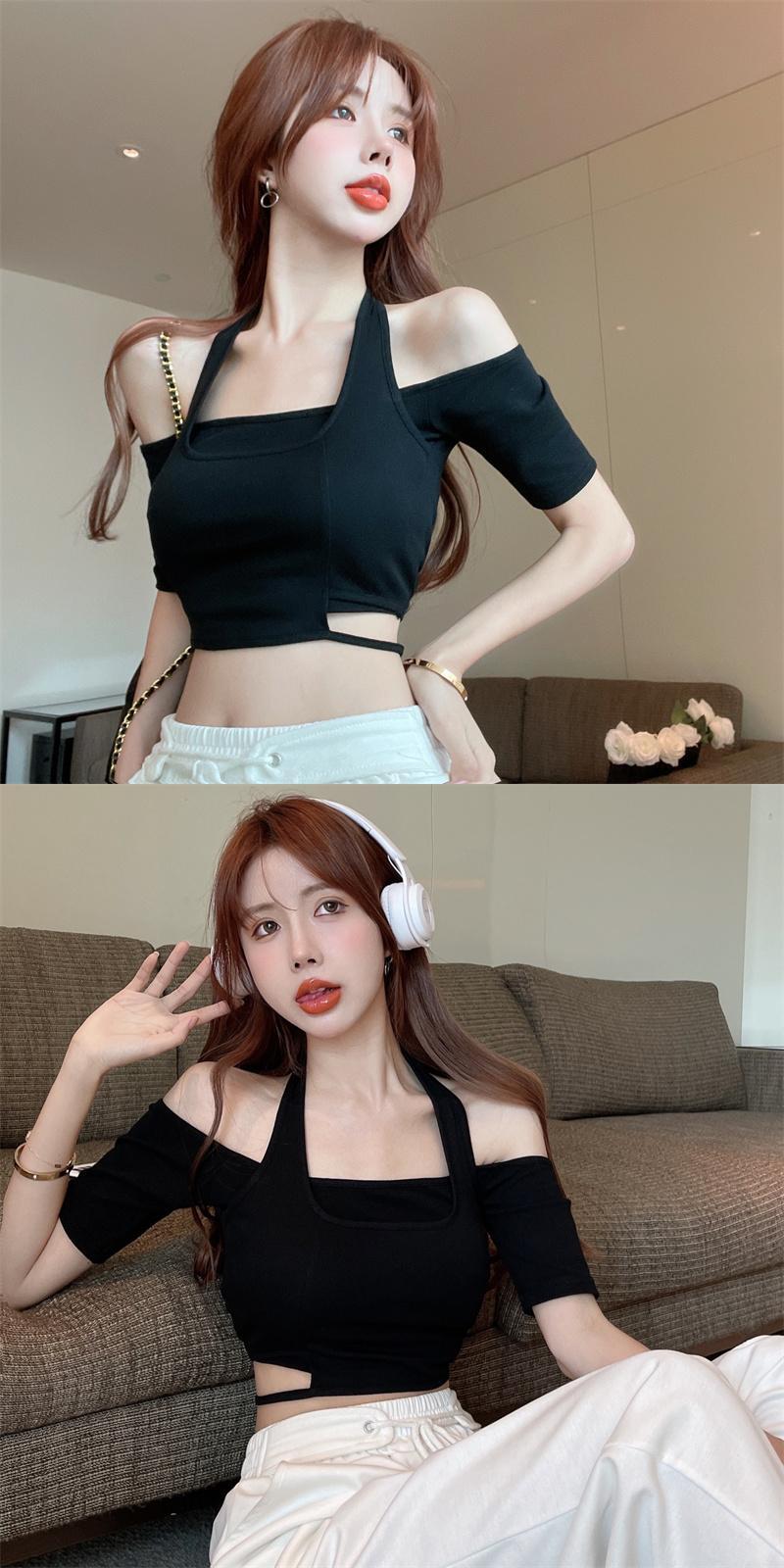 sense niche chic sexy top women's 2022 summer new irregular fake two-piece short-sleeved t-shirt サマー 夏物 Tシャツ nana59439534072 | modepoisson