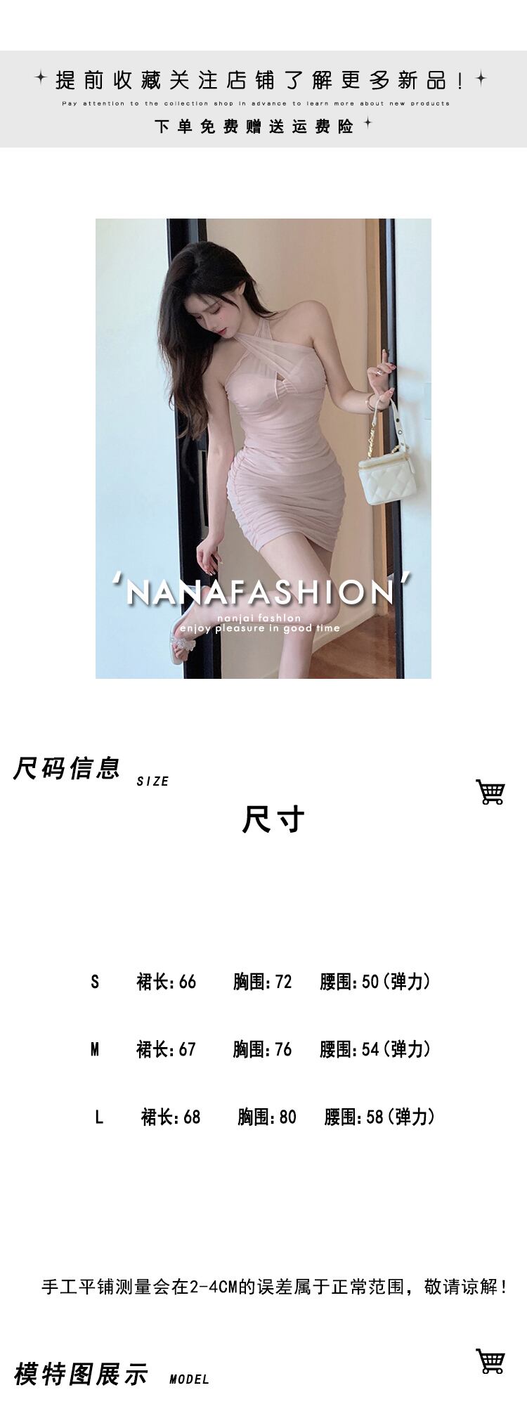 Pleated bag hip hanging neck strapless sexy lady temperament slim slim dress women's summer 2022 new プリーツ サマー 夏物 スリム nana44388240588 | modepoisson