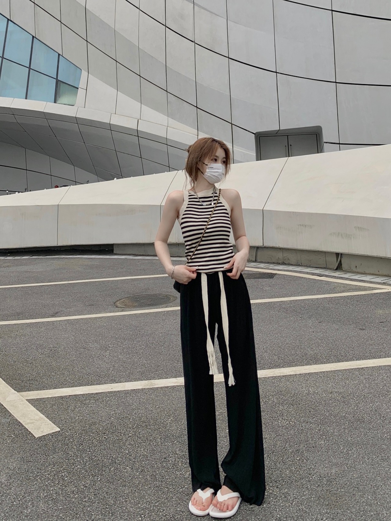 Sweet and salty two-piece suit 2022 summer new fashion halter neck camisole casual wide-leg pants women カジュアル 大人ガーリー スウィート キュート サマー 夏物 nana76080727073 | modepoisson