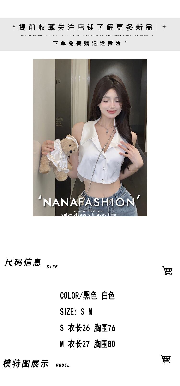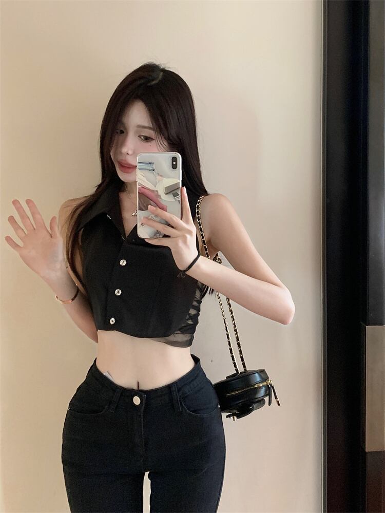 Sexy beautiful back niche design sense summer outerwear mesh short section open back hanging neck women's thin vest top ショート サマー 夏物 メッシュ nana67362609094 | modepoisson