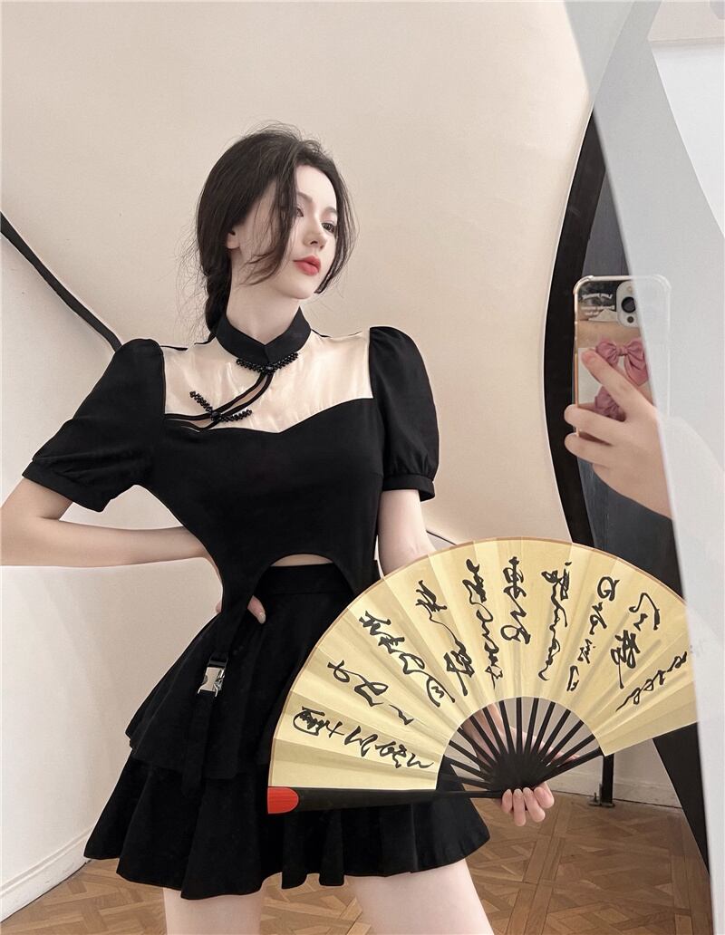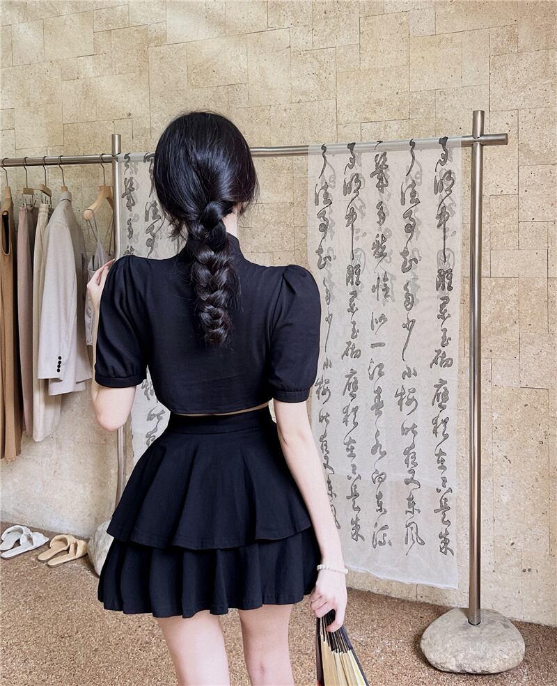 Hot suit female 2022 summer new fashion Republic of China style retro cheongsam slimming top high waist half body hakama ハイウェスト レトロ サマー 夏物 nana17446767779 | modepoisson