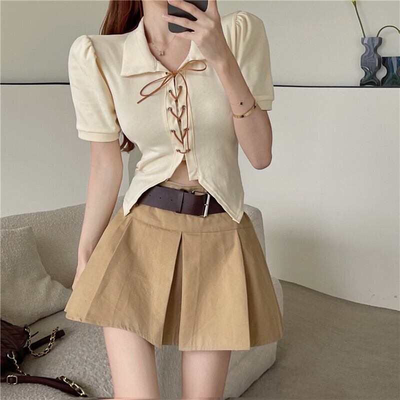 Playful and lively two-piece suit 2022 summer new fashion thin t-shirt high waist skirt women's clothing ハイウェスト サマー 夏物 スカート Tシャツ nana93010704671 | modepoisson
