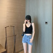 Net red high waist denim shorts women's 2022 summer new loose and thin wide leg straight A-line thin pants ハイウェスト レッド サマー 夏物 ショーツ ブルマー Aライン ワイドレッグ ワイドパンツ nana14316985861 | modepoisson