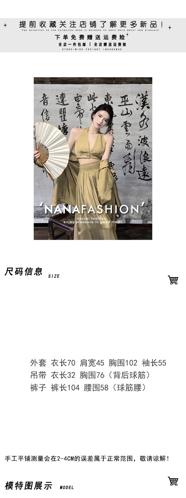 Salt series wear three-piece suit 2022 summer new fashion coat halter camisole wide-leg pants women's clothing サマー 夏物 nana23819278857 | modepoisson