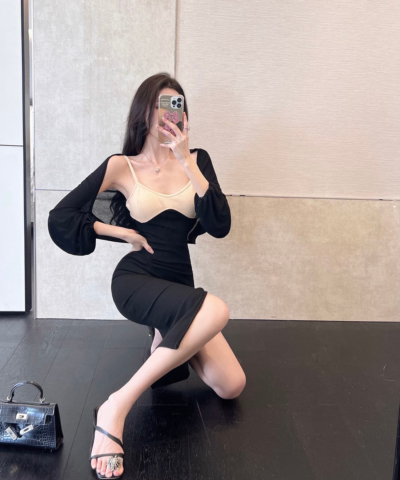 Sling dress women's 2022 summer new French temperament sexy split k slim skirt two-piece set サマー 夏物 スカート スリム nana55452354621 | modepoisson