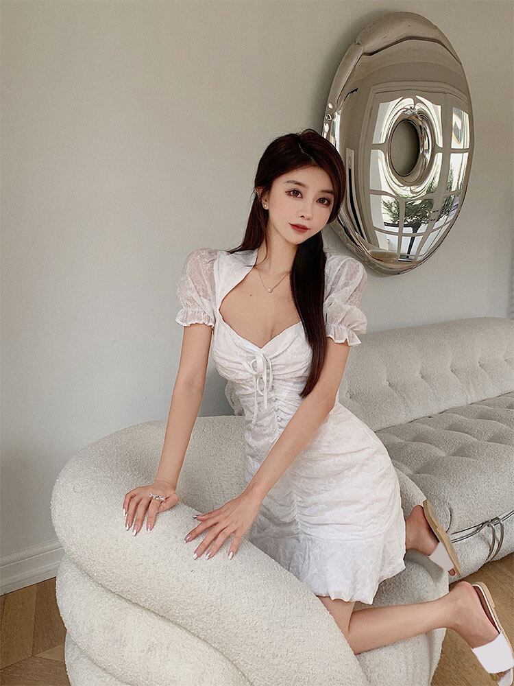 French temperament niche slim puff sleeve skirt 2022 summer new slim pure desire style dress female サマー 夏物 スカート スリム ピュア nana18305600862 | modepoisson