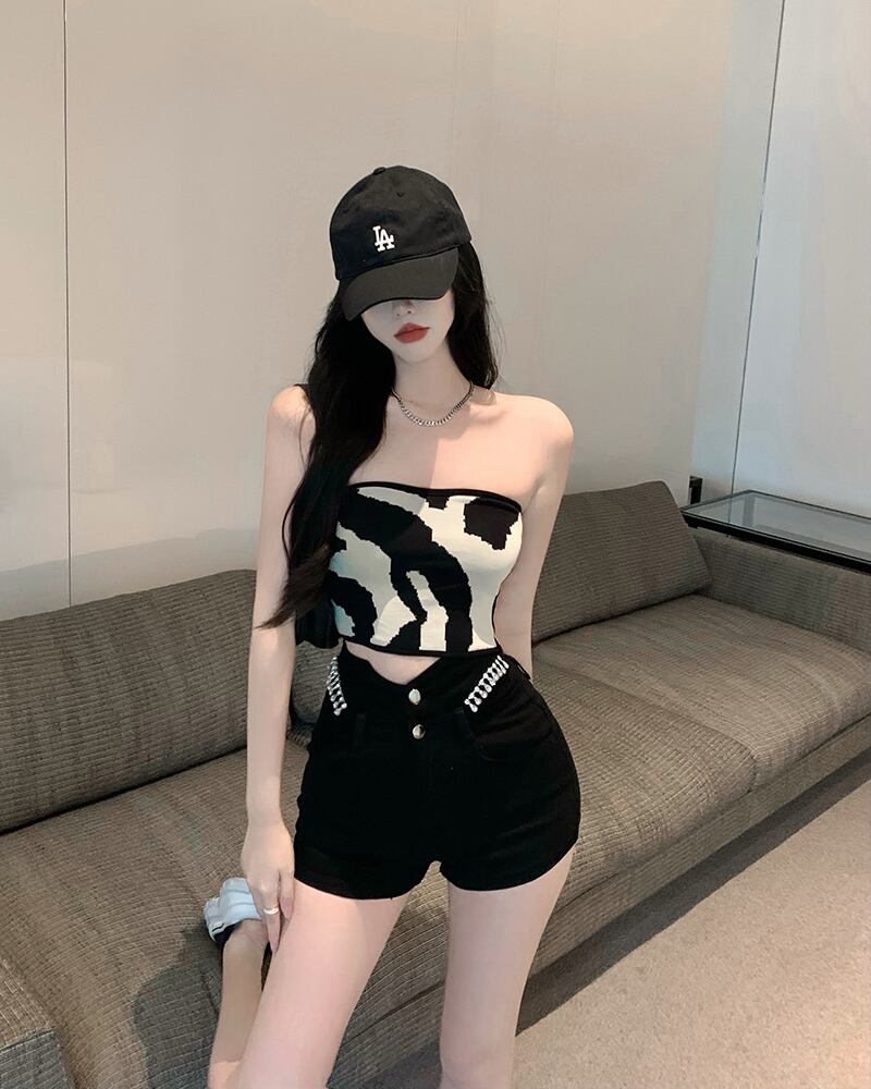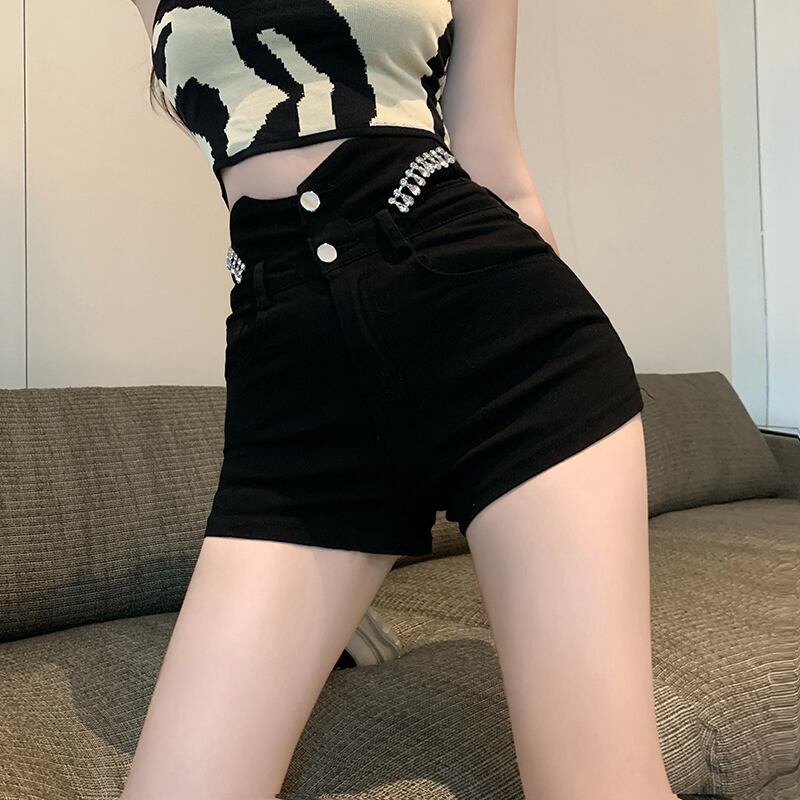 Denim Shorts 2022 Summer Hot Girl Waist Loose Wide Leg A-Line Thin Black Hot Pants Women's ブラック サマー 夏物 ショーツ ブルマー Aライン ワイドレッグ ワイドパンツ nana13632437488 | modepoisson