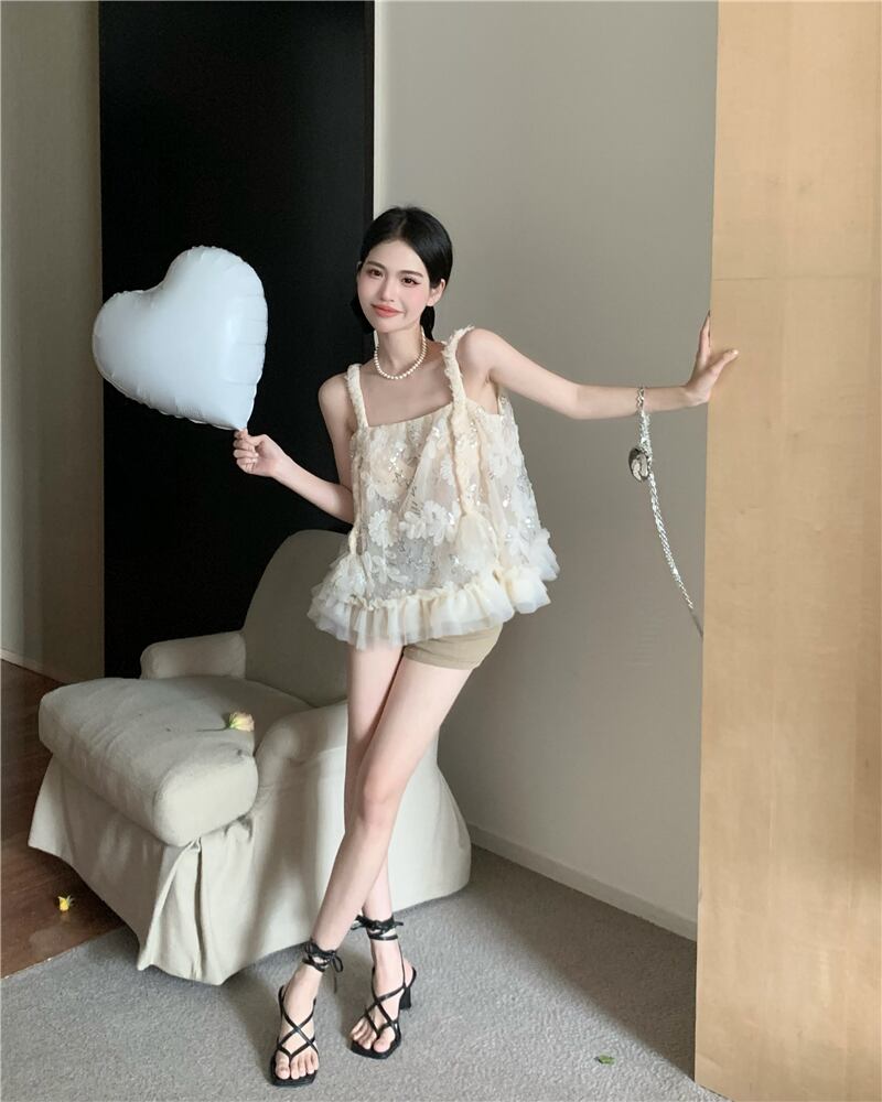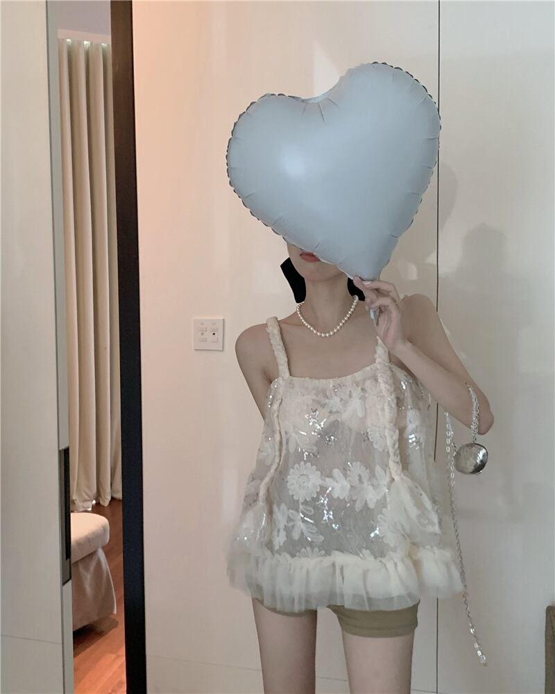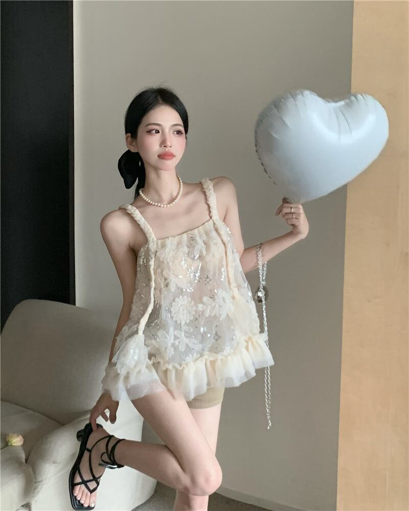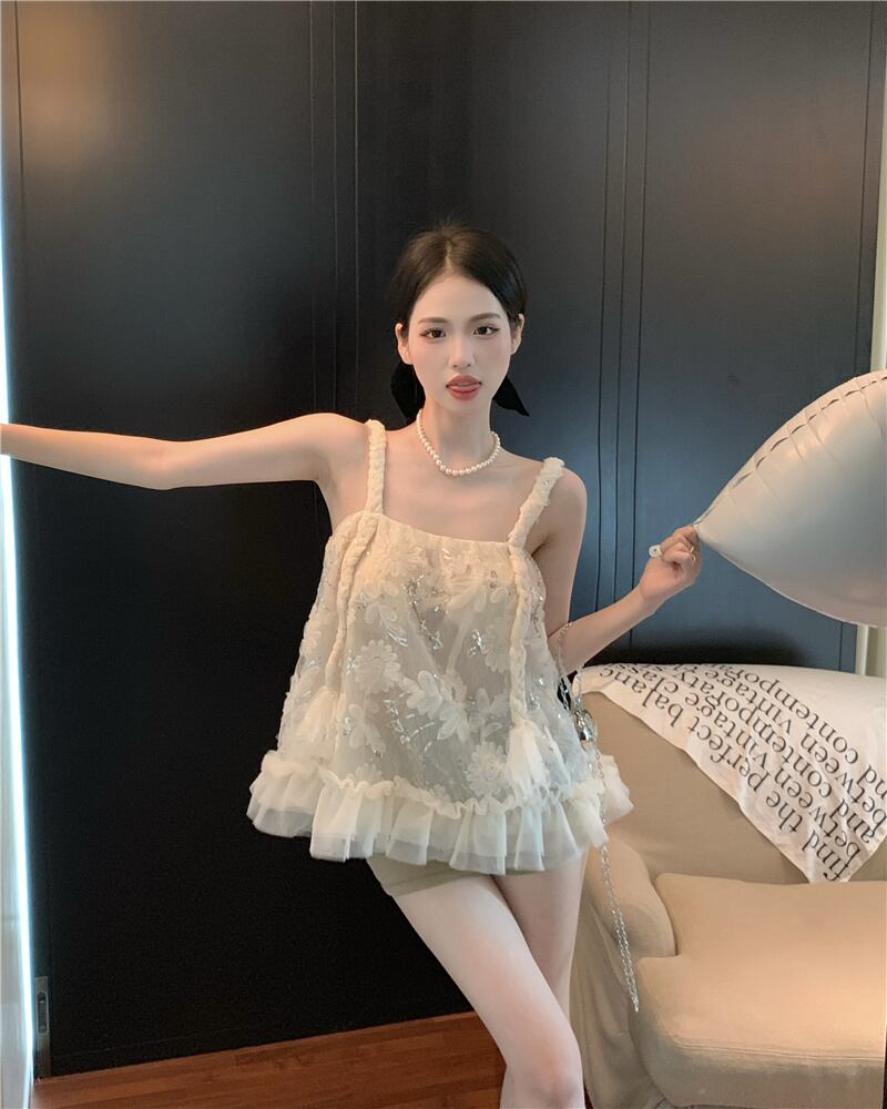 The summer design is niche and chic. Short French sweet and spicy style mesh lace camisole top women's clothing ショート レース 大人ガーリー スウィート キュート カジュアル サマー 夏物 メッシュ nana28761317603 | modepoisson