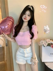 French thin knitted sweater women's 2022 summer new design niche slim slim chic short-sleeved top サマー 夏物 スリム nana11650864283 | modepoisson