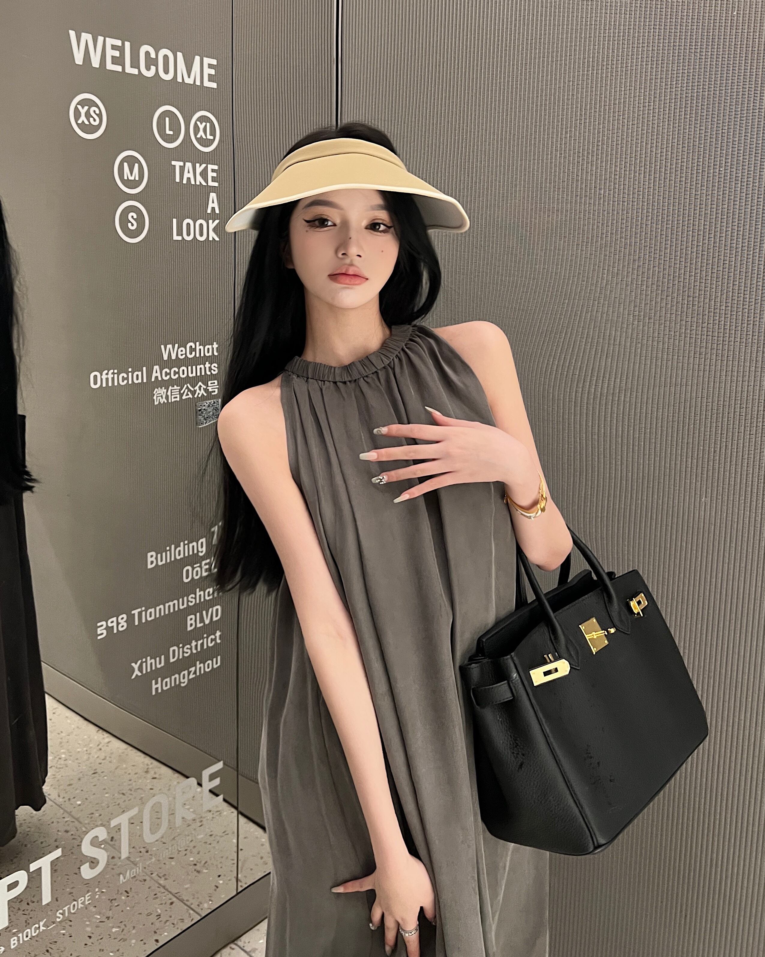 -quality halter neck sleeveless skirt temperament women's summer 2022 new pure desire mid-length dress trend サマー 夏物 ノースリーブ スカート ピュア nana94932271467 | modepoisson