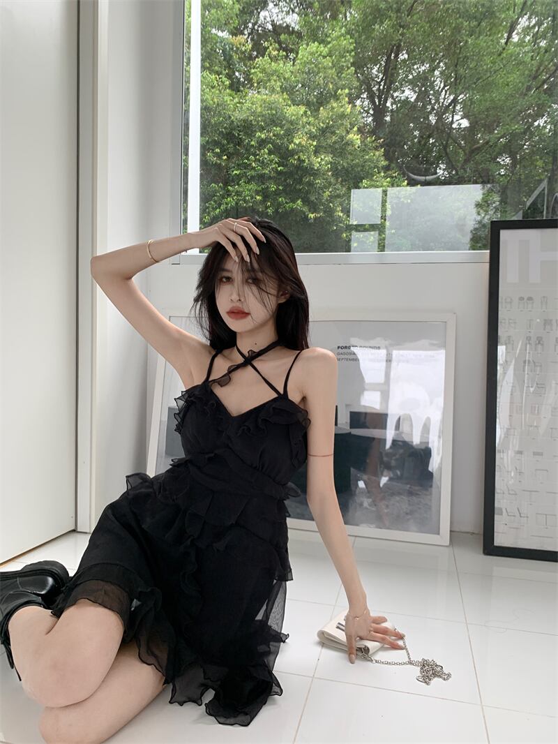 Sexy black halter dress women's 2022 summer new temperament waist thin niche suspender skirt ブラック サマー 夏物 スカート nana28998194182 | modepoisson