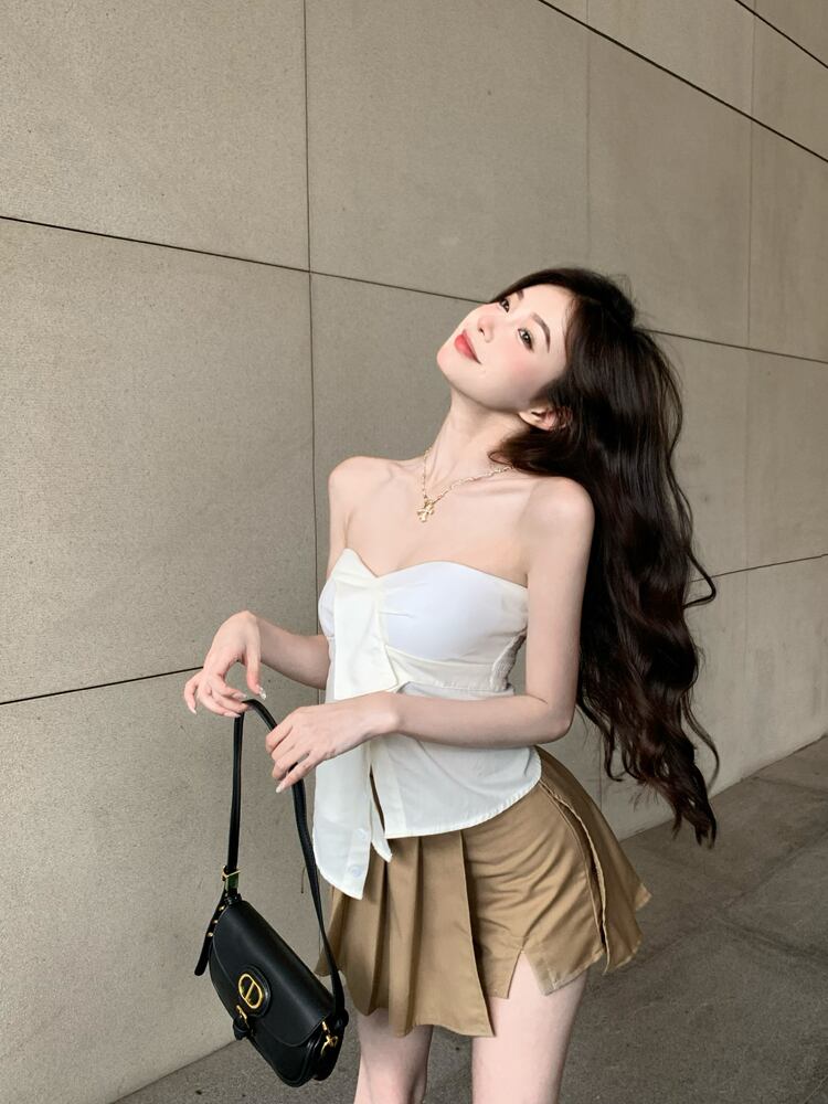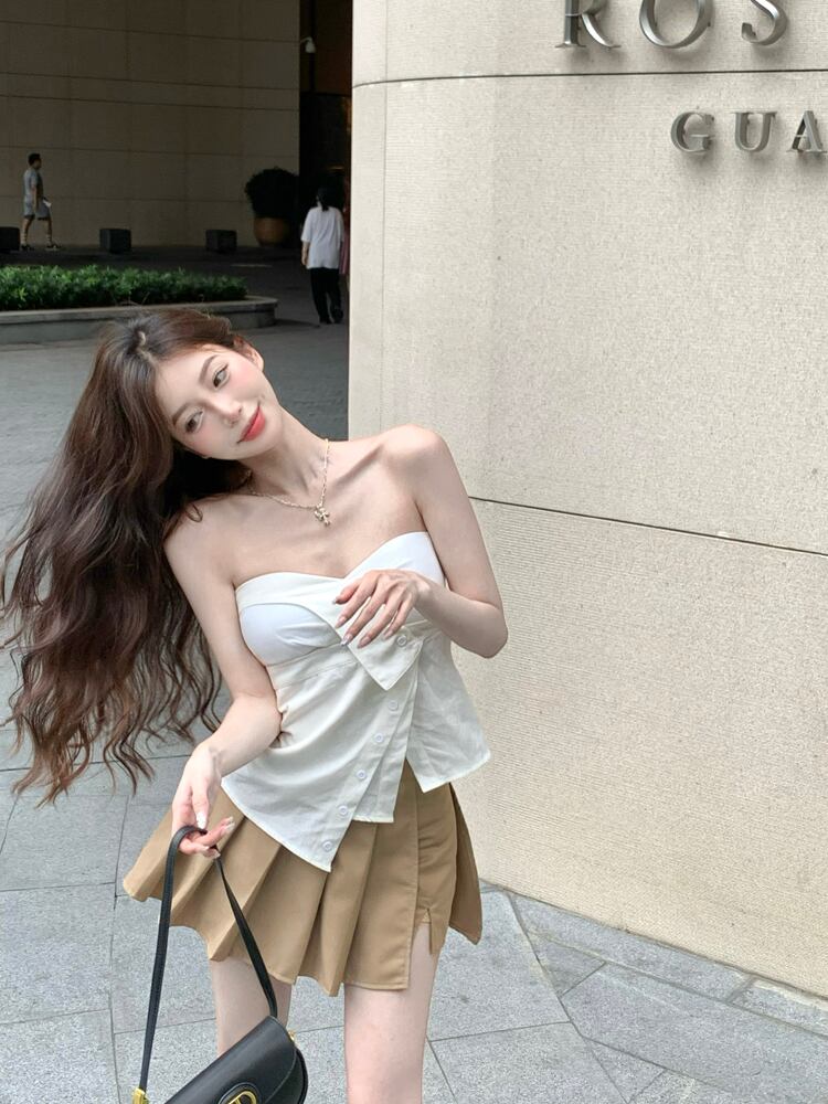 Western-style age-reducing and slimming suit 2022 summer new irregular tube top high waist pleated skirt women's two-piece suit ハイウェスト プリーツ サマー 夏物 スカート nana45646104051 | modepoisson