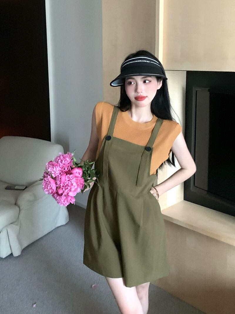 Salty and sweet two-piece suit pants 2022 summer new fashionable temperament sleeveless top high waist strap shorts women ハイウェスト 大人ガーリー スウィート キュート カジュアル サマー 夏物 ショーツ ブルマー ノースリーブ nana6015535532 | modepoisson