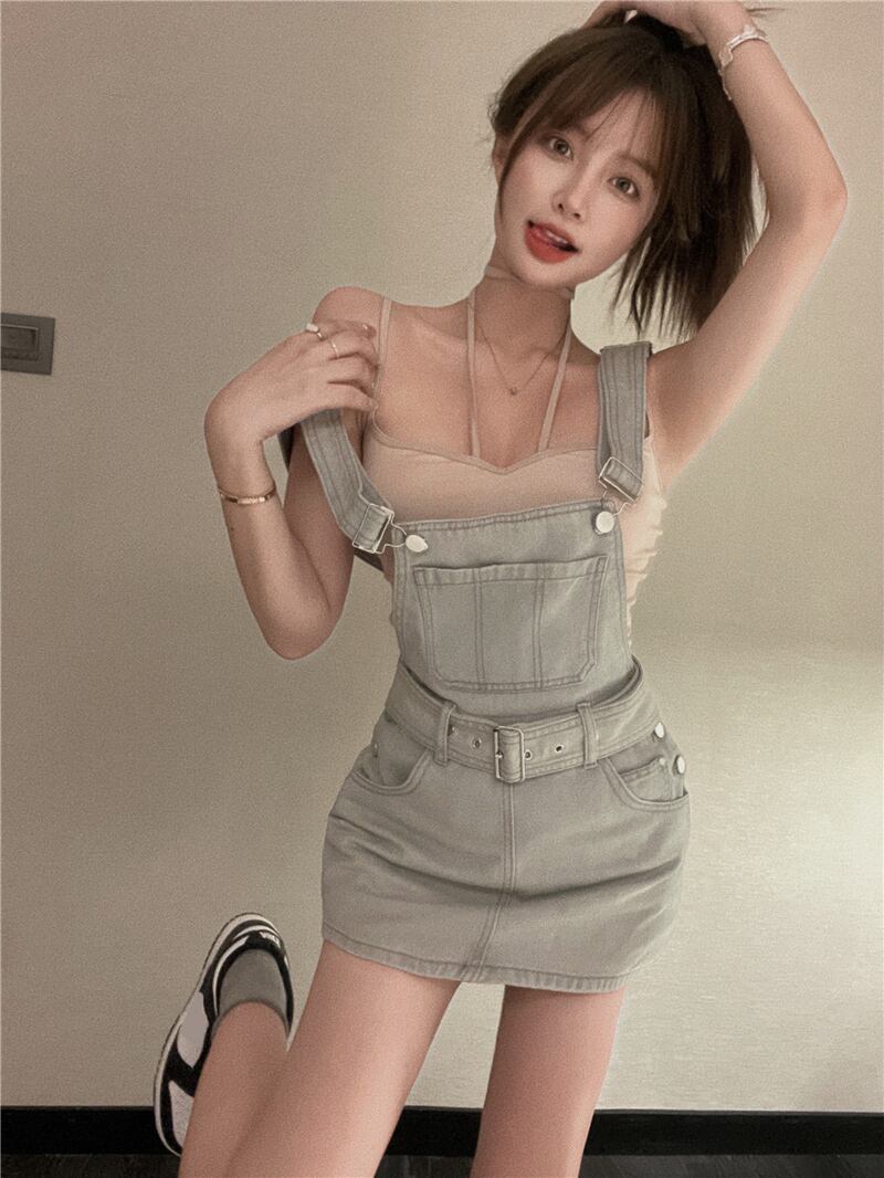 Small suit female summer 2022 new fashion camisole high waist denim short skirt two-piece set ハイウェスト ショート サマー 夏物 スカート nana89869670968 | modepoisson