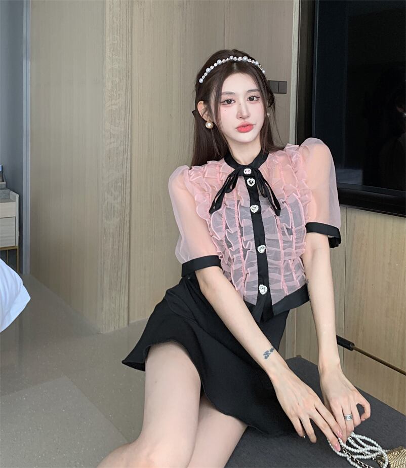 Royal sister light cooked Hong Kong flavor suit skirt 2022 summer new short-sleeved shirt high-waist fishtail skirt women's two-piece suit サマー 夏物 スカート nana79766945151 | modepoisson