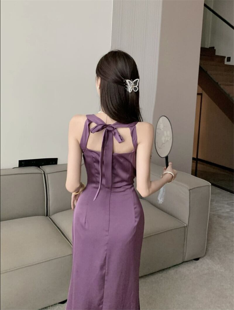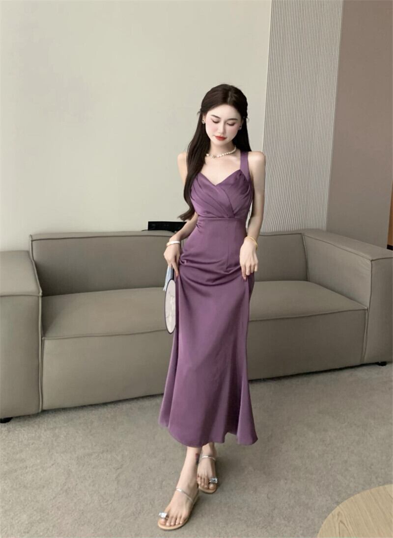 Purple waist slim fishtail long skirt 2022 summer new lady style explosion style suspender dress ロング サマー 夏物 スカート スリム パープル nana57399463802 | modepoisson