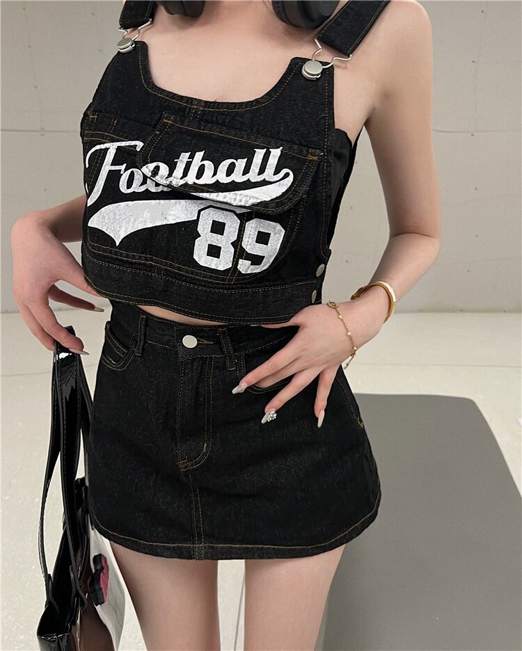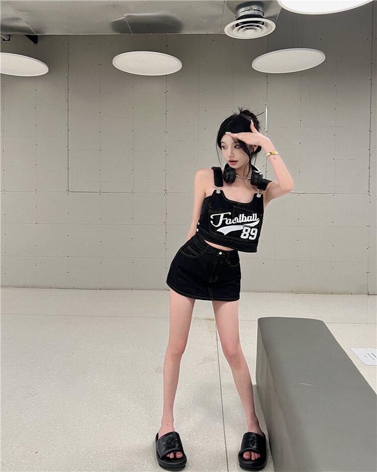 Suit women's summer 2022 new fashion sling tops bag hip tooling denim skirt sweet and spicy two-piece set 大人ガーリー スウィート キュート カジュアル サマー 夏物 スカート nana76539840118 | modepoisson