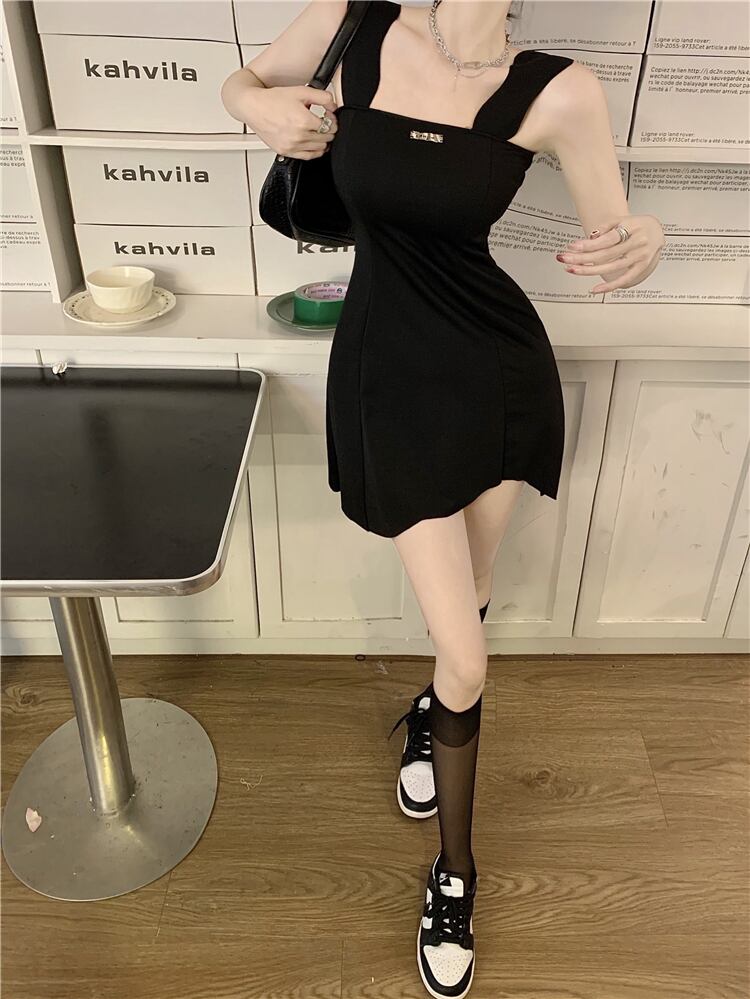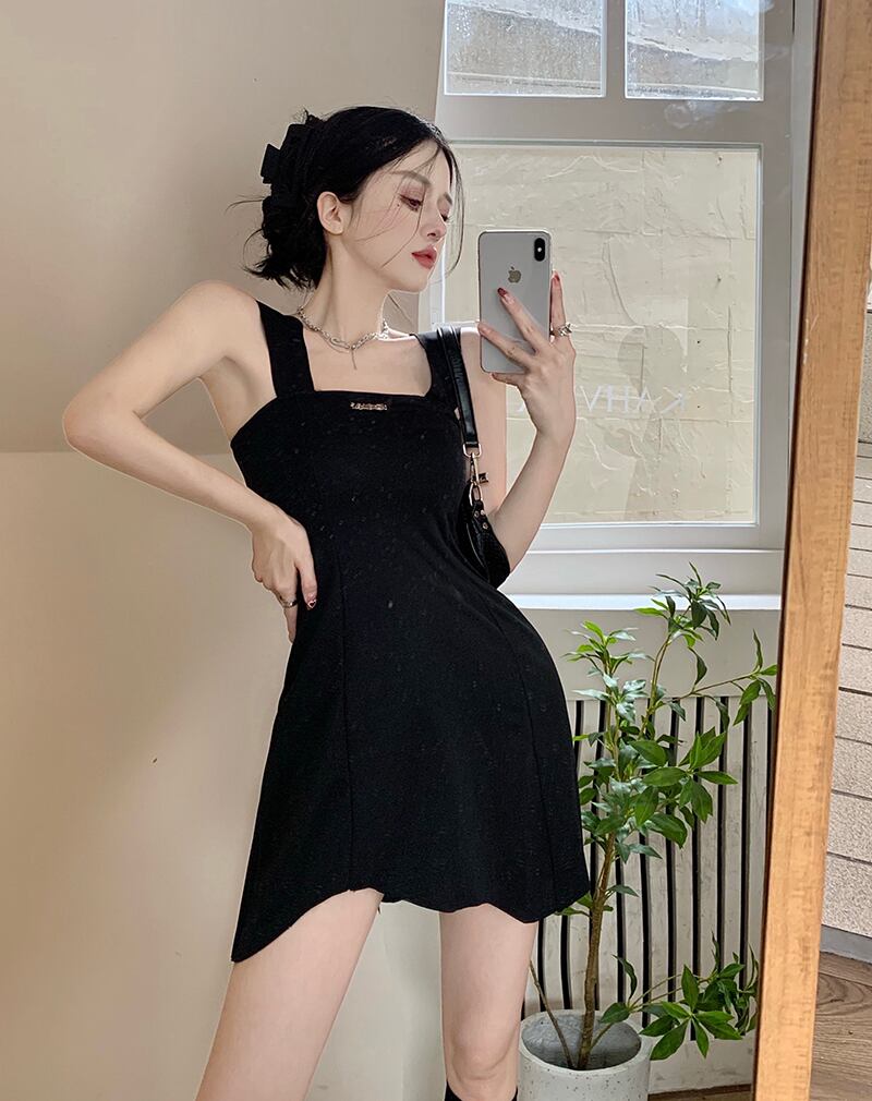 French Hepburn style black suspender dress women's 2022 summer new sleeveless waist slimming hip short skirt ショート ブラック サマー 夏物 ノースリーブ スカート nana99673927755 | modepoisson