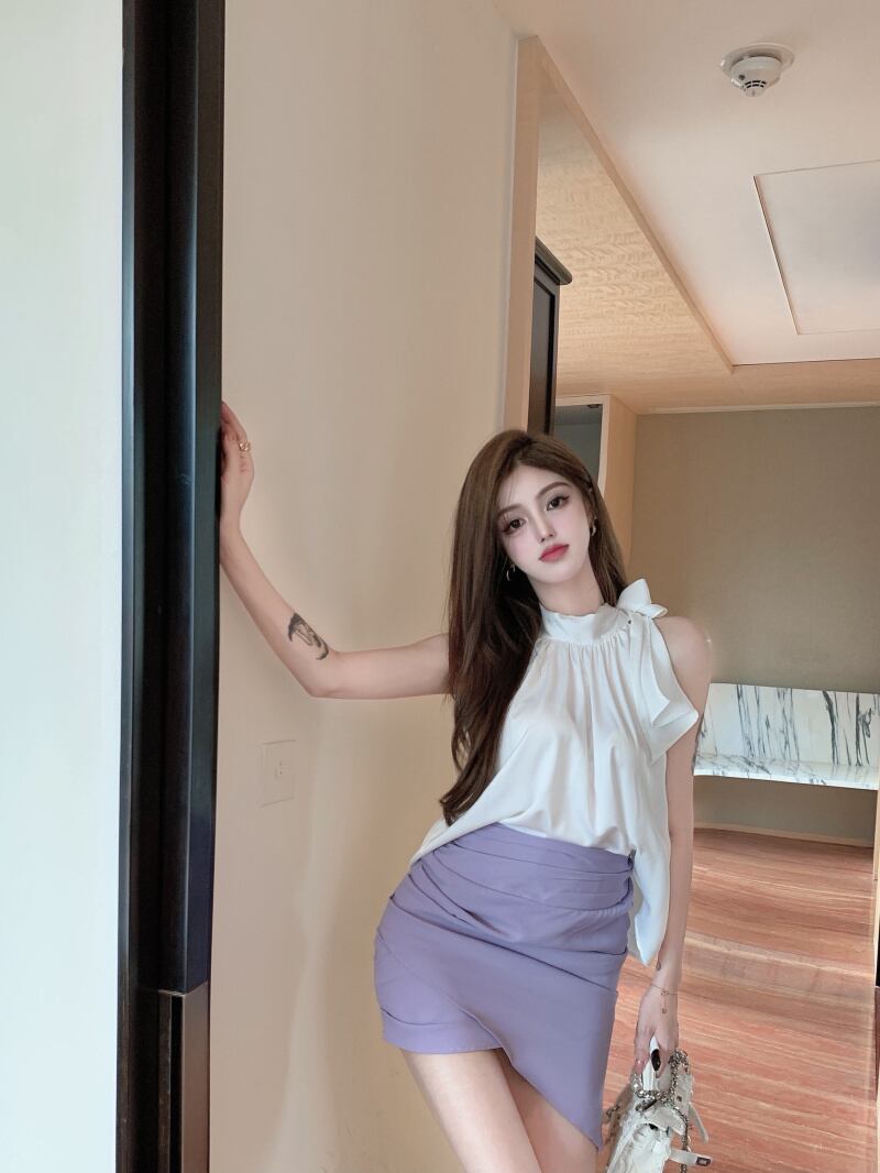 Suit female temperament goddess fan 2022 summer new fashion halter camisole high waist skirt two-piece set ハイウェスト サマー 夏物 スカート nana91451116428 | modepoisson