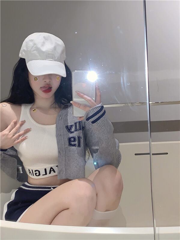 Suit female 2022 summer new knitted camisole high-waisted sports shorts long-sleeved cardigan jacket three-piece suit ロング カーディガン サマー 夏物 ショーツ ブルマー nana33410898385 | modepoisson