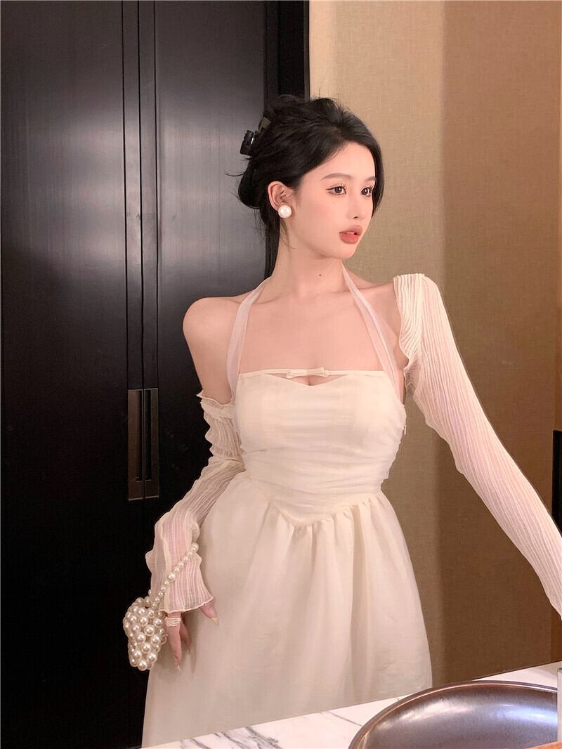 This year's popular beautiful suits 2022 summer new halter dress sunscreen cardigan top women's two-piece set カーディガン サマー 夏物 nana15218341963 | modepoisson