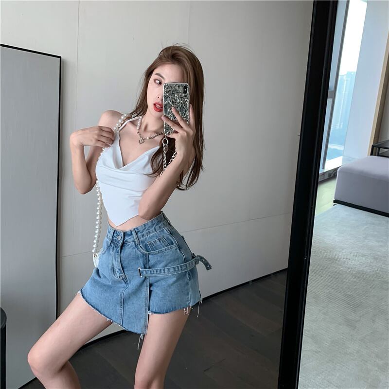 2022 summer new design sense niche loose wide-leg culottes high-waisted slim A-line denim shorts women's tide サマー 夏物 ショーツ ブルマー Aライン スリム nana62199882855 | modepoisson