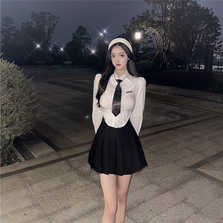 色:ホワイトshirt/tie,ブラックスカート