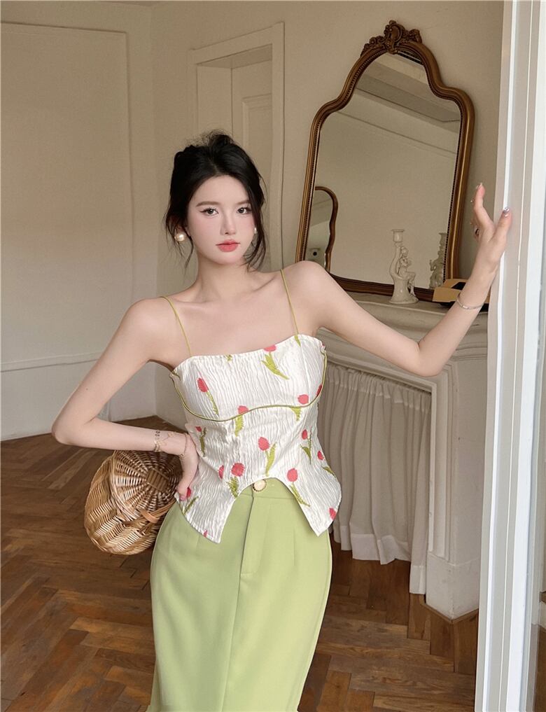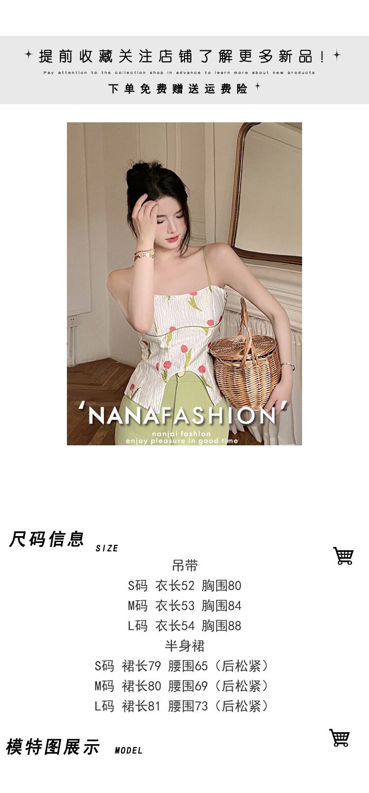 Sweet and spicy fried street skirt suit 2022 summer new sexy sling high waist bag hip skirt women's two-piece set ハイウェスト ストリート 大人ガーリー スウィート キュート カジュアル サマー 夏物 スカート nana8939060589 | modepoisson