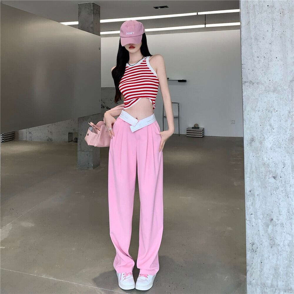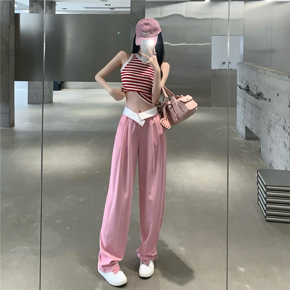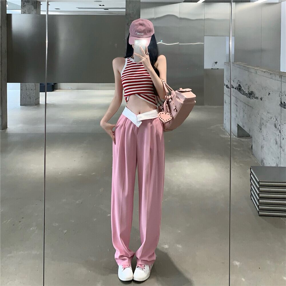 Summer suit 2022 new sleeveless striped vest suspender top high waist casual wide leg pants women's two-piece suit ハイウェスト カジュアル サマー 夏物 ノースリーブ ストライプ ワイドレッグ ワイドパンツ nana77299101084 | modepoisson