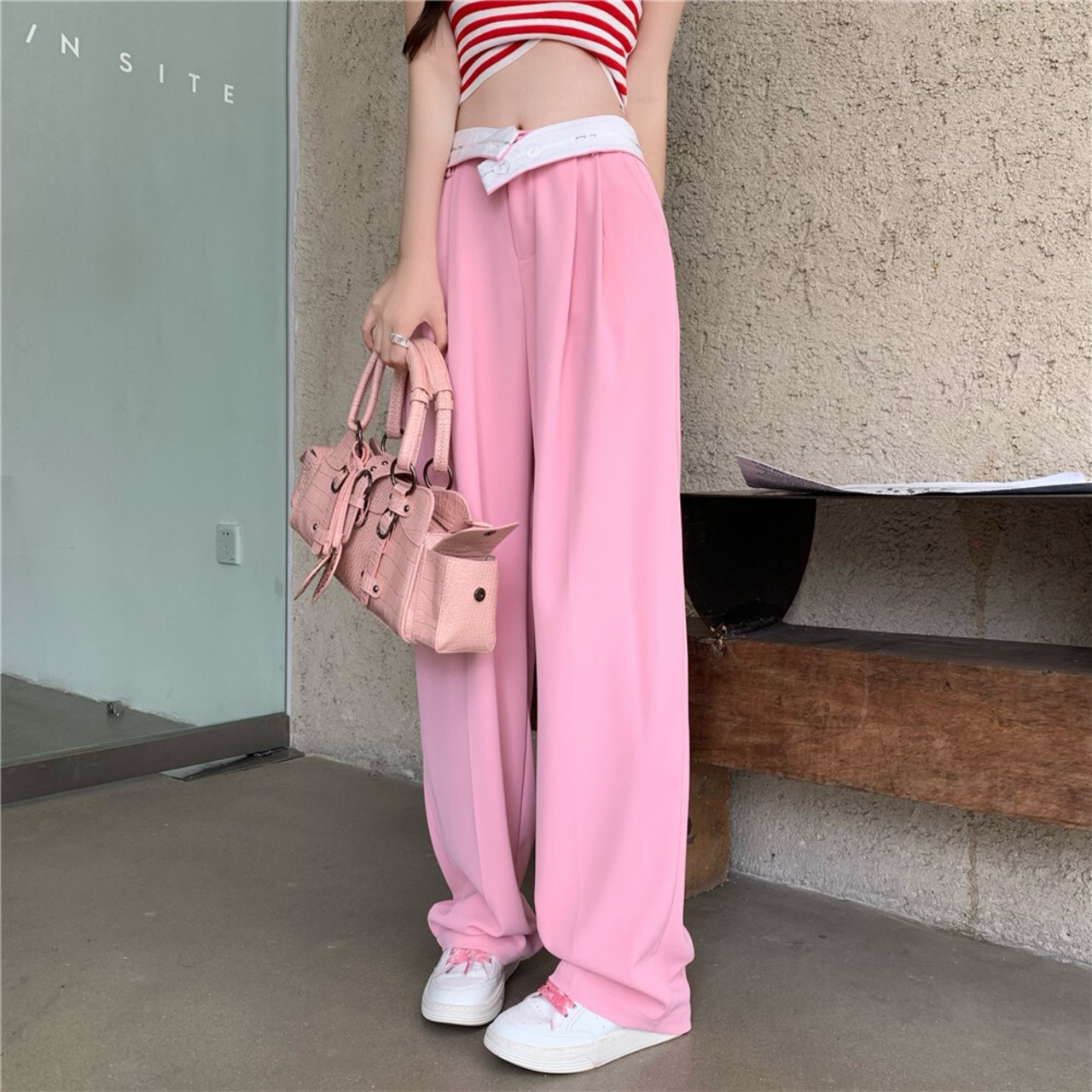 色:ストライプdvest,ピンクパンツ