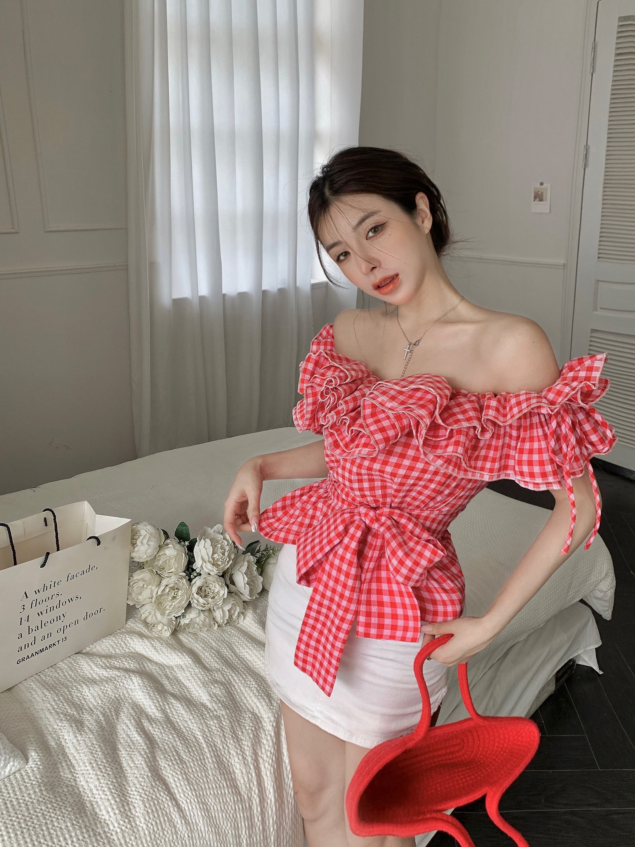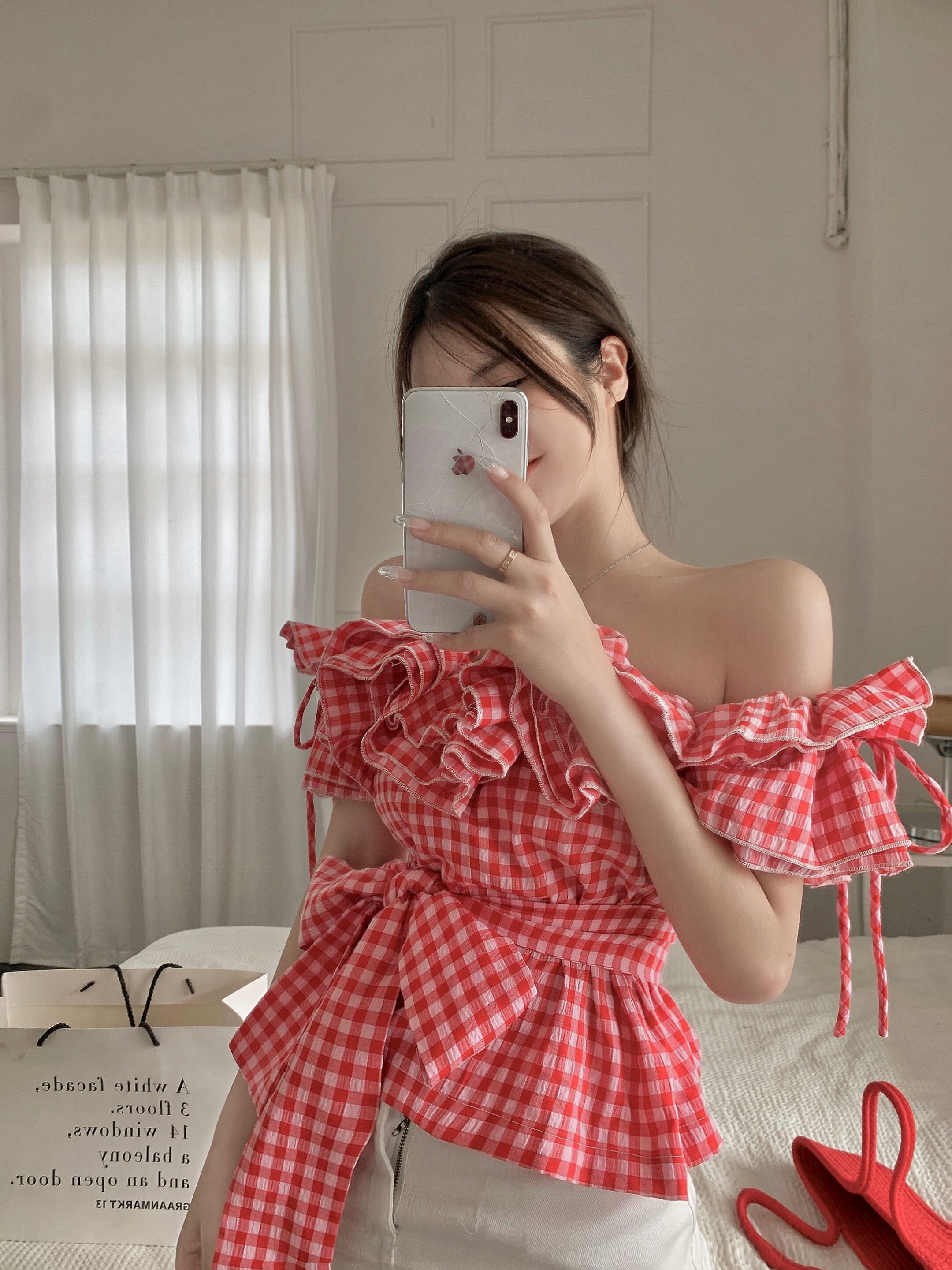 Sweet short beautiful top 2022 summer new design small slim slim plaid shirt ladies ショート 大人ガーリー スウィート キュート カジュアル サマー 夏物 スリム nana79812156435 | modepoisson